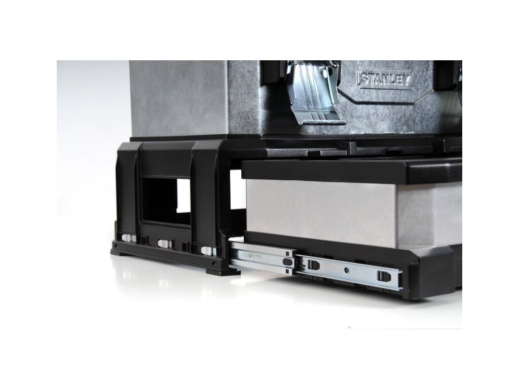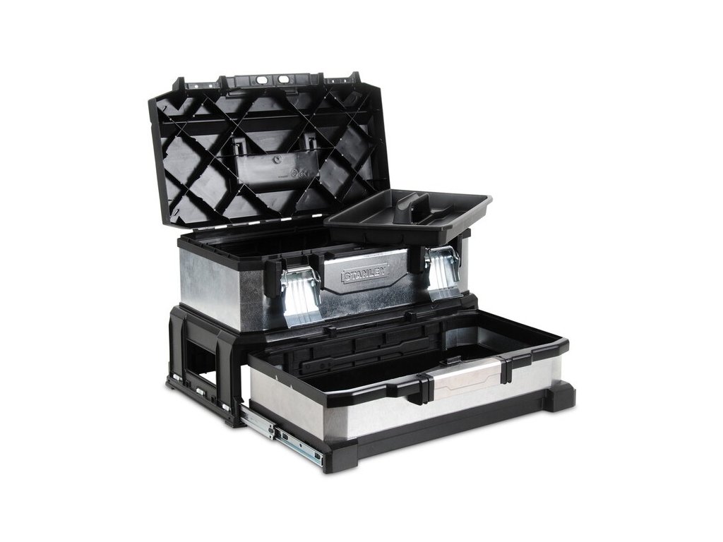 20\" kovoplastový box s vnitřní přihádkou. Pohodlná a ergonomická rukojeť s pryžovým obložením pro snadnou manupulaci. 4\" hluboká zásuvka s pojezdy na kuličkových ložiscích. Velké přezky s oky pro uzamčení obsahu visacími zámky. Kombinace horního boxu a spodní zásuvky umožňuje vhodné uložení nářadí s pohodlným přístupem. Rozměry 54x28x33,5cm