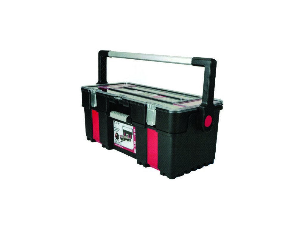GATOR /polykarb. víko/ • 2v1 plastový box na nářadí + organizér • organizér lze oddělit od boxu jako samostatný kufr • možnost uzamknutí víka organizéru (zámek není součástí) • variabilní příhrádky v organizéru • kovové madlo a zámky organizéru pro vysokou životnost • polykarbonátové průhledné víko organizéru • vnější rozměry: 61 x 29 x 27,4 cm • maximální hmotnost obsahu boxu: 18kg • pružný a pevný plast