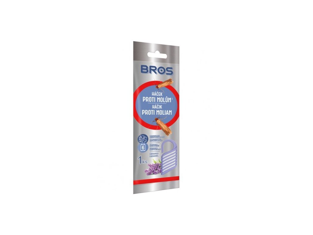 Háčky proti molům mají příjemnou levandulovou vůní a působí po dobu až 6 měsíců. Tento háček hubí šatní moly ve všech fázích vývoje - likviduje vajíčka, larvy i dospělé jedince. Účinně ochrání oblečení ve skříních, zásuvkách a šatnách.Doplňkové parametry