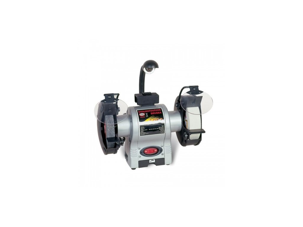 BKL-1500 - Dvoukotoučová bruska Dvoukotoučové stolní brusky PROMA jsou správnou volbou pro domácí dílnu, údržbářské i ostatní drobné provozy. Samozřejmostí je především tichý chod stroje, otvory pro upevnění k podkladu či stojanu, stabilní opěrky materiálu, orovnávač kotoučů, chladící prostor, ochranné bezpečnostní kryty proti odlétávání částic při broušení, možnost broušení pilových kotoučů, vrtáků a drobných obrobků. Tichý chod. Úchyty pro upevnění k podkladu či stojanu. Stabilní opěrky materiálu. Orovnávač kotoučů. Chladící prostor. Osvětlení. Technická data: Příkon 375 W Otáčky 2850 /min. prům. kotouče 150 mm Napětí 230 V Rozměr 1 kotouče 150 x 25 x 12,7 mm Rozměr 2 kotouče 150 x 40 x 12,7 mm Dodáváno včetně kotouče Hrubost (G80), (G36) Váhy a míry: Celková váha včetně obalu 11.5 kg Čistá váha 11.0 kg Šířka/Výška/Hloubka 26 / 29 / 43 cmDoplňkové parametry