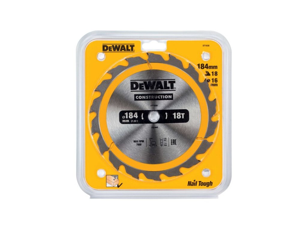 Pilový kotouč DEWALT je kotouč určený pro podélný řez dřeva. Jeho rozměry jsou 184 mm v průměru a 16 mm v tloušťce. Kotouč má 18 zubů s geometrií ATB (Alternate Top Bevel), což znamená, že každý zub má ostrý úhel střihu a hrotový úhel, což umožňuje snadnější a rychlejší řezání.Tento typ kotouče je ideální pro řezání dřeva a dřevotřísky, zejména pro podélný řez. Díky geometrii zubů může být řezání velmi rychlé a účinné, s minimálním výskytem trhlin v materiálu.