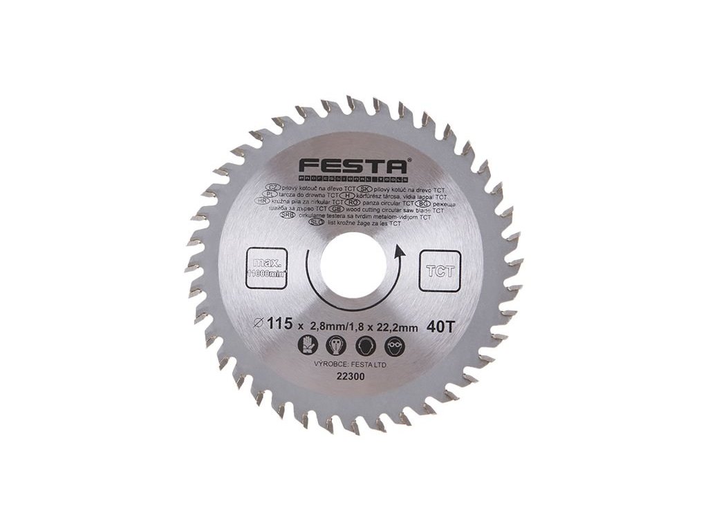 Pokud používáte ve vaší domácí či profi dílně kotoučovou pilu, tak jistě skvěle využijete tento kvalitní pilový kotouč Festa s průměrem 115 mm, který je vyroben z vysoce kvalitní uhlíkové oceli, obvod kotouče je lemován střídavě šikmými zuby s SK plátky. SK plátky, tj. plátky ze slinutých karbidů se vyznačují vysokou výdrží a mechanickou odolností. Pilový kotouč s SK plátky je pomocník pro kvalitní dělení měkkého i tvrdého dřeva. Umožňuje řezat či krátit prkna, trámy, hranoly, palubky, latě i další dřevěné tvary, a to příčně i podélně. Pozitivní úhel střídavě šikmých zubů, spolu s úzkým profilem kotouče, garantují klidný chod a bezpečný řez bez nežádoucích vibrací. Otáčet se může maximální rychlostí 8100 otáček za minutu. S jeho kvalitním provedením bude pro vás práce velkým potěšením.Specifikace: