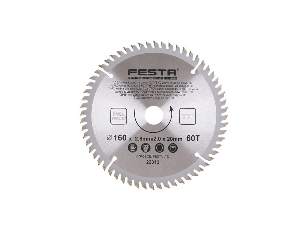 Pokud používáte ve vaší domácí či profi dílně kotoučovou pilu, tak jistě skvěle využijete tento kvalitní pilový kotouč Festa s průměrem 160 mm, který je vyroben z vysoce kvalitní uhlíkové oceli, obvod kotouče je lemován střídavě šikmými zuby s SK plátky. SK plátky, tj. plátky ze slinutých karbidů se vyznačují vysokou výdrží a mechanickou odolností. Pilový kotouč s SK plátky je pomocník pro kvalitní dělení měkkého i tvrdého dřeva. Umožňuje řezat či krátit prkna, trámy, hranoly, palubky, latě i další dřevěné tvary, a to příčně i podélně. Pozitivní úhel střídavě šikmých zubů, spolu s úzkým profilem kotouče, garantují klidný chod a bezpečný řez bez nežádoucích vibrací. Otáčet se může maximální rychlostí 7100 otáček za minutu. S jeho kvalitním provedením bude pro vás práce velkým potěšením.Specifikace: