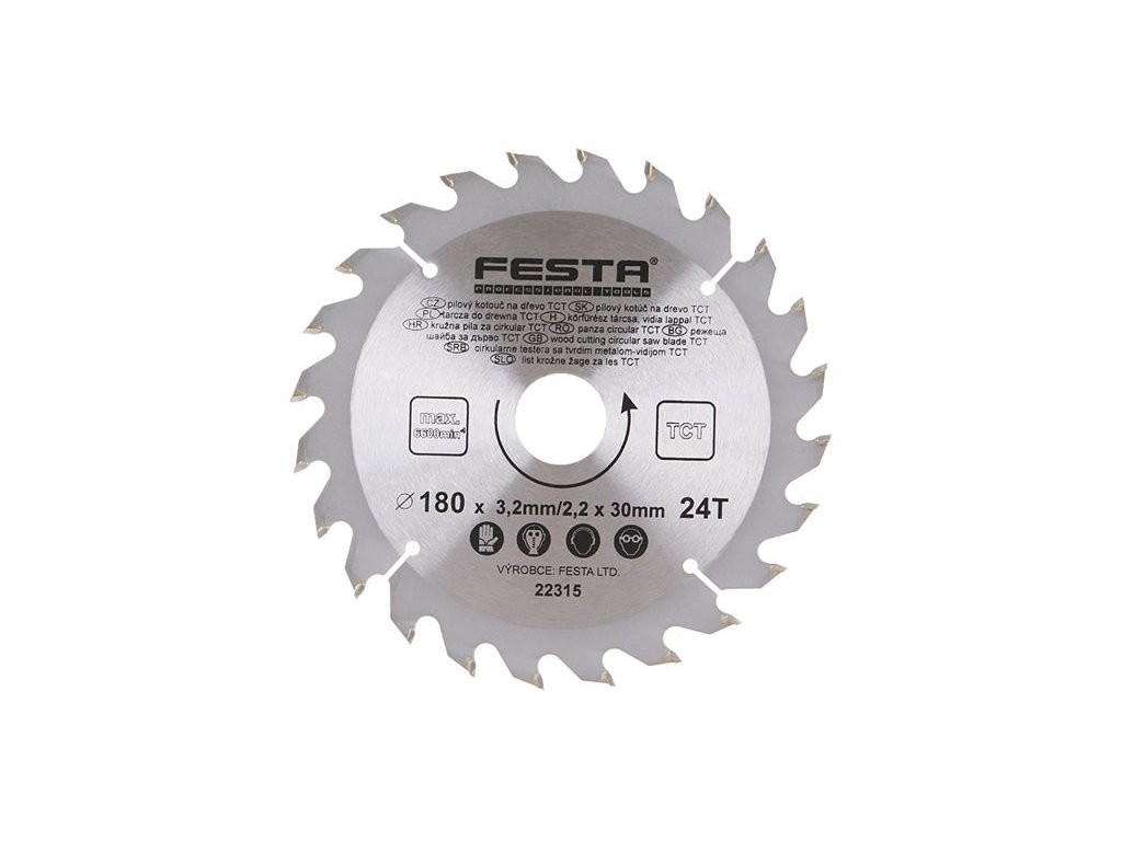 Pokud používáte ve vaší domácí či profi dílně kotoučovou pilu, tak jistě skvěle využijete tento kvalitní pilový kotouč Festa s průměrem 180 mm, který je vyroben z vysoce kvalitní uhlíkové oceli, obvod kotouče je lemován střídavě šikmými zuby s SK plátky. SK plátky, tj. plátky ze slinutých karbidů se vyznačují vysokou výdrží a mechanickou odolností. Pilový kotouč s SK plátky je pomocník pro kvalitní dělení měkkého i tvrdého dřeva. Umožňuje řezat či krátit prkna, trámy, hranoly, palubky, latě i další dřevěné tvary, a to příčně i podélně. Pozitivní úhel střídavě šikmých zubů, spolu s úzkým profilem kotouče, garantují klidný chod a bezpečný řez bez nežádoucích vibrací. Otáčet se může maximální rychlostí 6300 otáček za minutu. S jeho kvalitním provedením bude pro vás práce velkým potěšením.Specifikace: