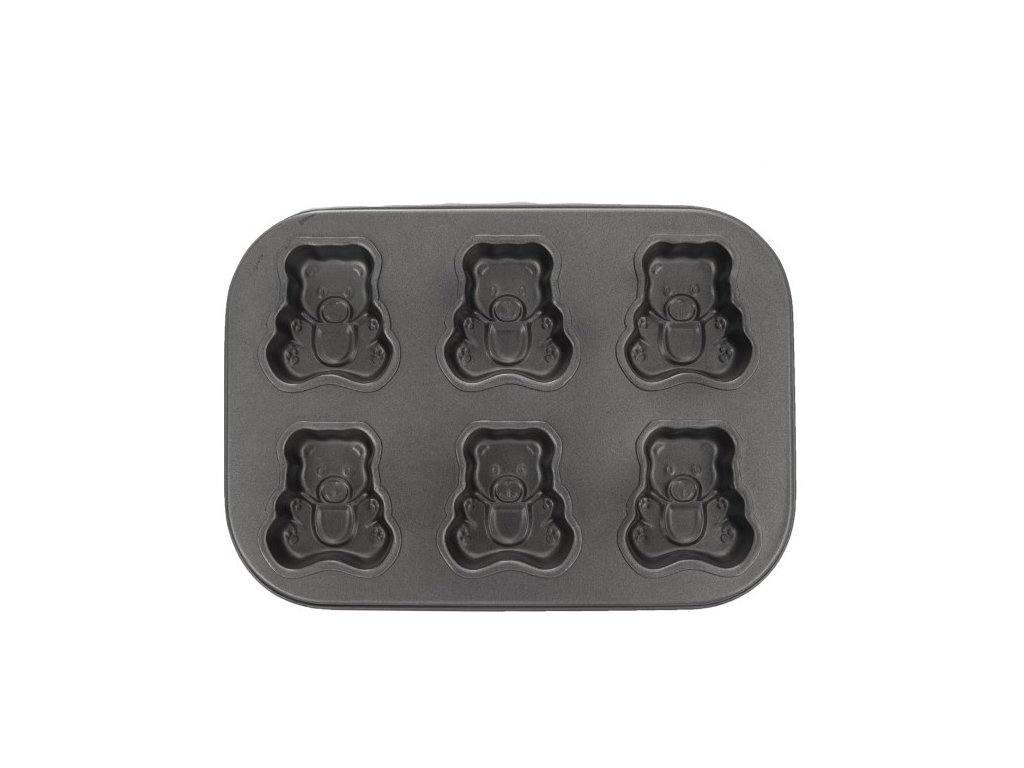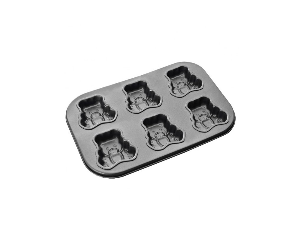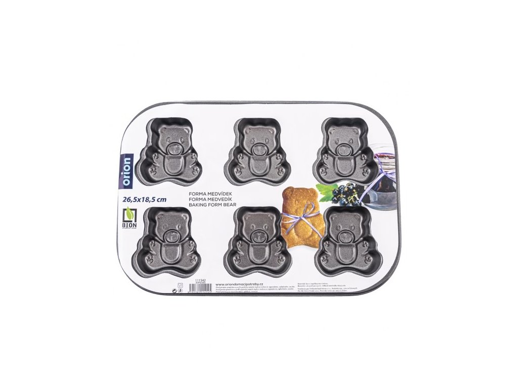 Děti často škemrají v obchodě a chtějí koupit přeslazené piškotové medvídky. Což takhle zapojit své ratolesti a zkusit tyhle oblíbené medvídky upéct doma. Děti vám rády pomohou a vy budete mít přehled o kvalitě použitých surovin, především o množstvím cukru. V nepřilnavé kovové formě na pečení můžete upéct z piškotového nebo litého těsta nadýchané medvídky, plněné marmeládou či čokoládou. Můžete v nich také zapéct domácí müsli. Výhody: nepřilnavý povrch – zabrání ulpívání těsta rychlé a stejnoměrné propečení forma je vhodná do plynové, elektrické i horkovzdušné trouby Upozornění: U hodně lepivých těst stačí lehce stříknout olejem ve spreji. Používejte chňapku. Snadno se myje pod tekoucí vodou s přidáním saponátu, bez použití abrazivních prostředků. Nepoužívejte myčku na nádobí. Vlastnosti produktu Materiál: kov s nepřilnavým povrchem Nepřilnavý povrch: ano Délka (cm): 26,5 Šířka (cm): 18,5 Výška (cm): 2,5 Hmotnost (g): 188 Tvar: medvídek Použití: také příprava čokolády Vlastnosti: 6 ks na pečení Vhodné do myčky: ne Vhodné do mikrovlnky: ne Vhodné do trouby: ano Období: celoročněDoplňkové parametry