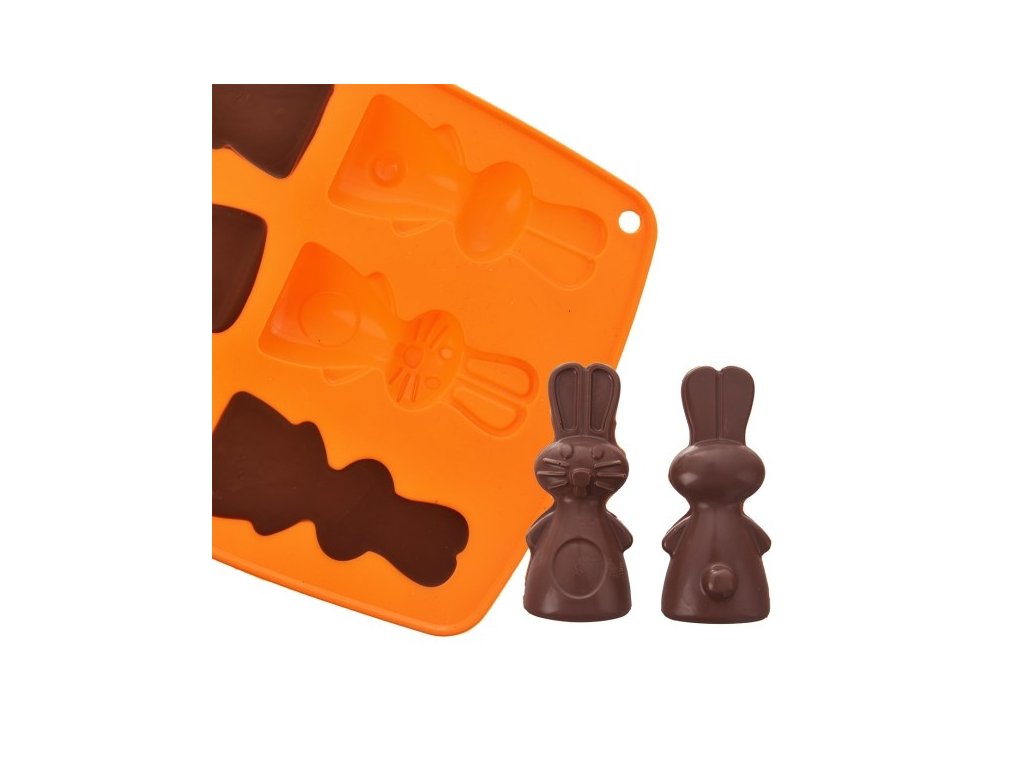 Jedním ze symbolů Velikonoc je zajíček. Co takhle vyrobit si čokoládové zajíčky doma? Stačí rozpustit čokoládu ve vodní lázni a nalít do šikovné silikonové formy. Ta zachová všechny propracované detaily a díky pružnosti zajíčky snadno vyjmete. I děti rády pomohou při jejich přípravě. Z této formy vyrobíte 3 zajíčky, přední a zadní část pak stačí spojit nebo je nechat oddělené. Získáte tak 6 kousků velikosti 9x4 cm. Koledníci s pomlázkou i mlsný partner budou nadšeni. Kombinujte hořkou, mléčnou a bílou čokoládu, mandle, pistácie nebo chilli, podle toho, co máte rádi. Lze je použít i k výrobě mražené ovocné dřeně nebo pečení litého těsta. Tam je třeba vytáhnout upečené dobroty včas, aby se hlavně u mělkých částí nepřipekly. Výhody silikonových pečících forem: pružné a skladné odolné - snesou teplotu v rozmezí od -40 °C do +220 °C nepřejímají vůni ani chuť použitých potravin bez pracného vysypávání, vyklepávání a umývání lze je vložit do mrazáku i do mikrovlnné trouby jsou vhodné do myčky Vlastnosti produktu Kolekce: SILLINIE Materiál: silikon Nepřilnavý povrch: ano Barvy: oranžová Délka (cm): 24 Šířka (cm): 18 Výška (cm): 2 Hmotnost (g): 105 Tvar: zajíček Použití: na čokoládu Vlastnosti: 6 ks na pečení Vhodné do myčky: ano Vhodné do mikrovlnky: ano Vhodné do trouby: ano Vhodné do mrazáku: ano Období: VelikonoceDoplňkové parametry