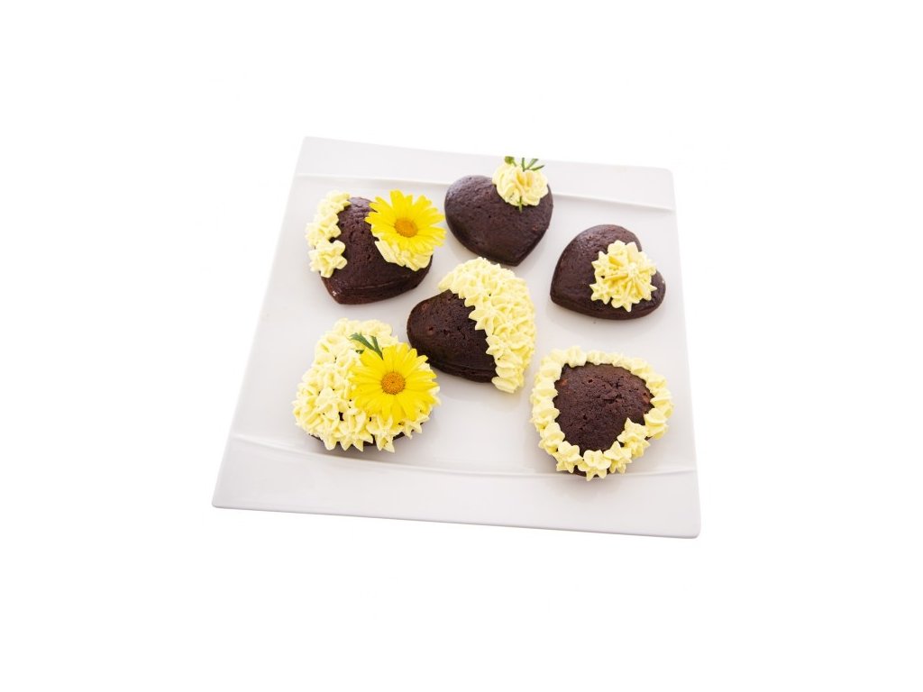 Pečte tradičně, ale v netradičních nepřilnavých formách. Muffiny nebo cupcaky z litého, třeného či piškotového těsta, zdobené krémem a polevou jsou oblíbeným dezertem nejen k odpolednímu čaji. Sklidíte úspěch i u svých kolegů v práci. Nebo si udělejte domácí paštiku s brusinkami a mandlemi. Díky kvalitní a praktické oranžové silikonové formě ve tvaru srdíček bude pečení muffinů snadnější. Třeba 6 ks naráz. Formy jsou vyrobené z odolného, žáruvzdorného silikonu, určeného pro styk s potravinami. Výhody silikonových pečicích forem: pružné a skladné pečení je rychlé a rovnoměrné odolné - snesou teplotu v rozmezí od -40 °C do +220 °C nepřejímají vůni ani chuť použitých potravin bez pracného vysypávání, vyklepávání a umývání jednotlivých formiček lze je vložit do mrazáku i do mikrovlnné trouby jsou vhodné i do myčky stačí je uložit do zásuvky nebo je skladovat srolované, zaberou tak minimum místa v zásuvkách Vlastnosti produktu Kolekce: SILLINIE Materiál: silikon Nepřilnavý povrch: ano Barvy: oranžová Délka (cm): 30 Šířka (cm): 20,5 Výška (cm): 2,5 Hmotnost (g): 134 Tvar: srdce Použití: na sladké, na slané Vlastnosti: 6 ks na pečení Vhodné do myčky: ano Vhodné do mikrovlnky: ano Vhodné do trouby: ano Vhodné do mrazáku: ano Období: celoročněDoplňkové parametry