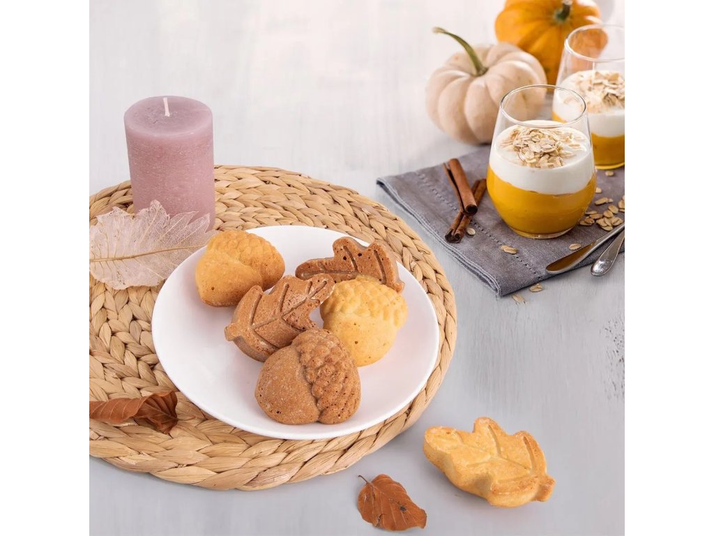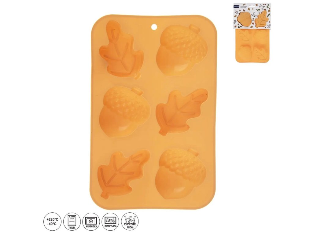 Silikonová forma Vám vytvoří krásné podzimní dobroty ve tvaru dubových listů a žaludů. Můžete vytvořit nepečené i čokoládové zákusky, stejně dobře v ní ale tyto tvary můžete upéci z piškotového nebo litého těsta, perníčky. Materiál: silikon. 6 tvarů. Snáší vysoké teploty (od -40 °C do +220 °C), nepřejímá chutě ani vůně z použitých potravin. Vhodná do myčky na nádobí, MVT, chladničky, mrazničky i trouby. Rozměry: 27x17x3,5 cm, ozdoby cca 8,5x6,5 cm.Doplňkové parametry