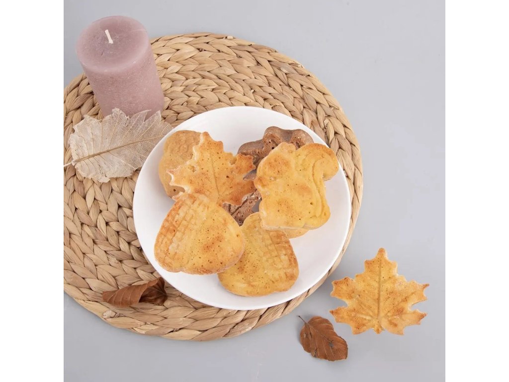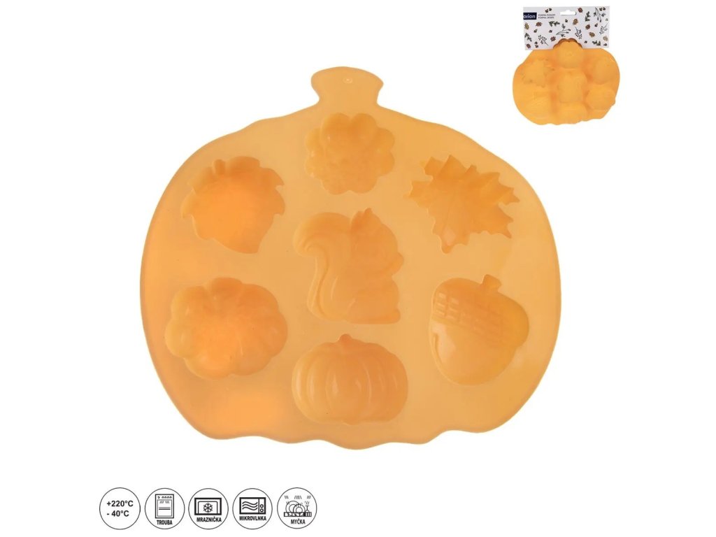 Silikonová forma Vám vytvoří krásné podzimní dobroty. Můžete vytvořit nepečené i čokoládové zákusky, stejně dobře v ní ale tyto tvary můžete upéci z piškotového nebo litého těsta, perníčky. Materiál: silikon. 7 tvarů. Snáší vysoké teploty (od -40 °C do +220 °C), nepřejímá chutě ani vůně z použitých potravin. Vhodná do myčky na nádobí, MVT, chladničky, mrazničky i trouby. Rozměry: 26x25,5x3 cm, ozdoby cca 6,5x6 cm.Doplňkové parametry