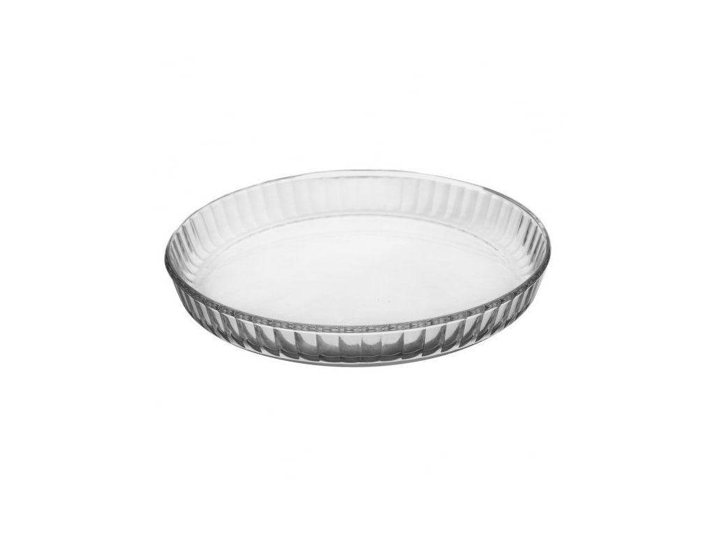Skleněnou koláčovou formu z odolného borosilikátového skla stačí vymazat, vysypat a naplnit svou oblíbenou směsí. Jestli dáváte přednost klasickému hrníčkovému koláči s ovocem, křehkému mřížkovému koláči z lineckého těsta, nebo zkoušíte netradiční varianty cheescaku, slaný quiche apod., skleněná forma vám pečení usnadní. Borosilikátové sklo je hygienický materiál bez obsahu olova a kadmia, hodí se pro přípravu nejrůznějších zapečených i chlazených pokrmů. Formu po upečení nechte zvolna vychladnout a koláč pak snadno vyklopíte nebo nakrájíte přímo ve formě. Přednosti skleněných forem: odolné borosilikátové sklo snese teploty od -20 °C do +300 °C teplo zvolna, plynule prostupuje skleněnou stěnou a stejnoměrně peče máte vizuální přehled o tom, zda je i spodní část dozlatova propečená vhodné do elektrické, plynové i horkovzdušné trouby odolná vůči poškrábání, lze používat kovové náčiní nebo v ní rovnou krájet lze mýt v myčce nádobí Vlastnosti produktu Materiál: sklo Nepřilnavý povrch: ne Výška (cm): 3,5 Průměr (cm): 27,5 Hmotnost (g): 906 Tvar: kulatý Použití: na koláč Vhodné do myčky: ano Vhodné do mikrovlnky: ano Vhodné do trouby: ano Období: celoročněDoplňkové parametry