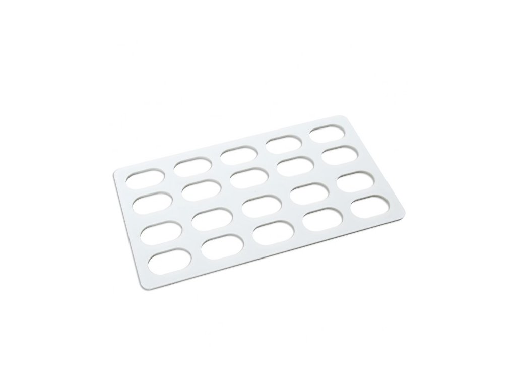 Každý s chutí sáhne po křehkém bílém pokušení ve formě laskonky plněné karamelovým nebo máslovým krémem. Nemusíte chodit do cukrárny, abyste si je vyrobili doma, třeba z domácích vajíček. Praktická forma/šablona na mini-laskonky usnadní přípravu stejně velkých základů z bílků a cukru, někdo přidává cukerný rozvar, ořechy či kokos. Hmotu stačí nanést přes šablonu na pečicí papír na plechu, přebytečnou stěrkou stáhnout, šablonu odklopit a nechat upéct, či spíše usušit v troubě. Na běžné velikosti plechu tak vytvoříte 40 ks úžasných, na povrchu křupavých a uvnitř vláčných laskonek. Dobře usušené laskonky vydrží v suchu i několik týdnů, navíc jsou bezlepkové. Vlastnosti produktu Materiál: plast Nepřilnavý povrch: ne Barvy: bílá Délka (cm): 30 Šířka (cm): 18 Výška (cm): 0,4 Hmotnost (g): 79 Tvar: obdélník Použití: na laskonky malé Vlastnosti: 20 ks na pečení Vhodné do myčky: ano Vhodné do mikrovlnky: ne Vhodné do trouby: ne Období: celoročněDoplňkové parametry