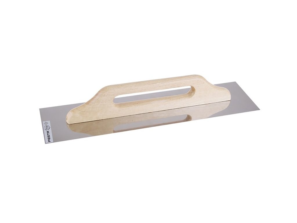 Hladítko nerezové rovné FESTA 500x130 mm s dřevěnou rukojetí, tl.plechu 0,7 mm. Ostří je perfektně vytvarováno, je vyrobeno z prvotřídní tvrzené nerezové oceli. Používá se zejména k nanášení lepidel pod obklady a dlažby, dále pak k nanášení stěrek, štuků, omítek, tmelů a dalších stavebních hmot.