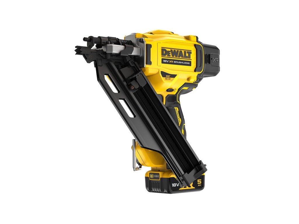 • 18V XR 90mm TESAŘSKÁ HŘEBÍKOVAČKA 33 STUPŇŮ (přepínač jednotlivý/opakovaný režim) • 18V bezuhlíkový motor pro delší životnost, a větší účinnost a výkon, schopný zarážet hřebíky s kruhovou stopkou 90 mm do dřeva střední hustoty • Vyšší otáčky pro rychlejší nastřelování • Kompatibilní s většinou na trhu nabízených hřebíků na papírové pásce a optimalizovaná pro hřebíky DNPT (papírová páska) a DNW (spojené drátkem) • Dodává se s oboustranným háčkem na řemen a pohodlným háčkem pro zavěšení na trámy • Přesná regulace hloubky díky rozšířené regulaci kolečkem • Konstrukce nosu optimalizovaná pro šikmé nastřelování • Nový zásobník z hořčíku s vylepšeným systémem plnění • Prodloužený zásobník se prodává jako samostatné příslušenství pro delší provoz opětovným plněním Technické parametry: • Napětí akumulátoru 18 V • Délka 353 mm • Úhel zásobníku 30 - 34° • Typ akumulátoru XR Li-Ion • Průměr hřebíku 2,8 - 3,3 mm • Délka hřebíku 50 - 90 mm • Pracovní teplota - 20° / +50° Součást dodávky: • 2 x 5,0 Ah baterie • Nabíječka • Plastový kufr • HřebíkovačkaDoplňkové parametry