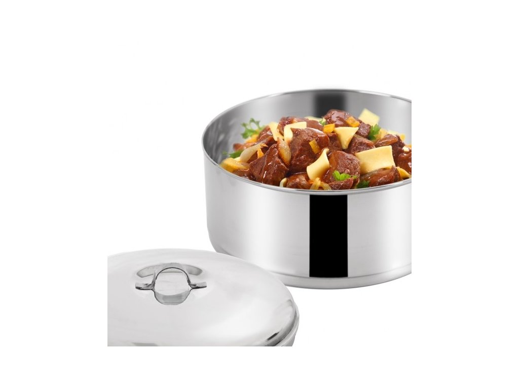 Pokud převážíte jídlo do práce nebo z práce, berete si ho s sebou na cesty nebo potřebujete převézt pokrmy ze závodního stravování, jídelen k vašim blízkým, tento nerezový třípatrový jídlonosič bude dobrým pomocníkem. Obsahuje 3 nerezové misky o objemu 1 litr, budou ideální pro uložení celého menu, polévky, hlavního jídla a salátu nebo dezertu. Jeho součástí je také kovový stojan, který umožňuje skládání nádob na sebe a zároveň je opatřený přezkou sloužící k jejich pevnému zajištění. Vlastnosti produktu Materiál: nerezová ocel Uzávěr/víko: ano Materiál víka/uzávěru: nerezová ocel Výška (cm): 27 Průměr (cm): 16 Objem (l): 3 Hmotnost (g): 733 Tvar: kulatý Vlastnosti: klasik Vhodné do myčky: ne Vhodné do mikrovlnky: ne S termoobalem: ne Objem: 3X1 lDoplňkové parametry
