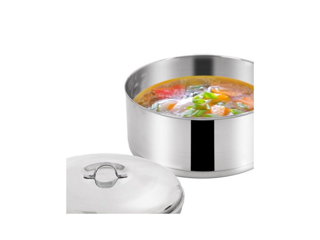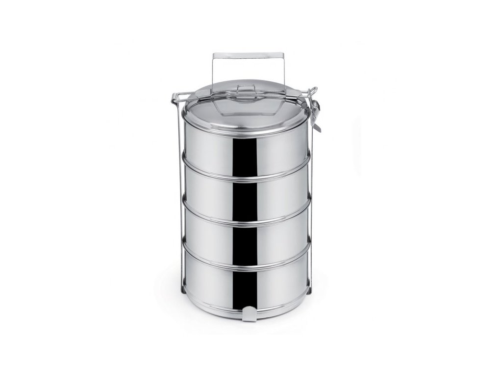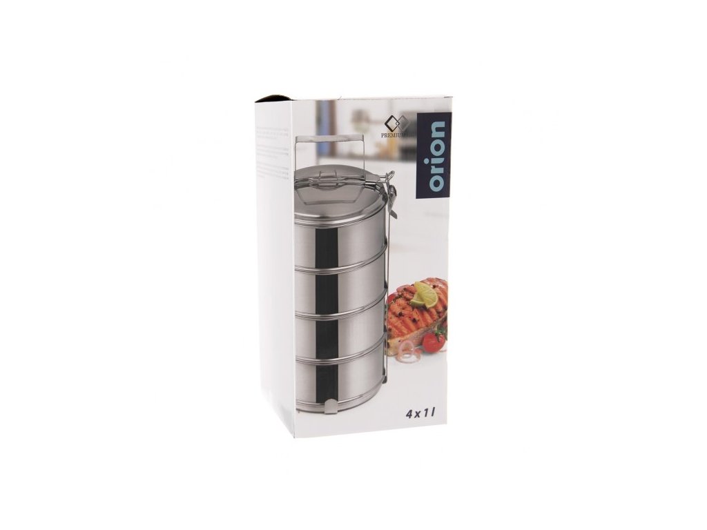 Dopřejte si jistotu kvalitního materiálu, který se nerozbije a neopotřebuje. **Orion nerezový jídlonosič 4 x 1 l** je praktickým a spolehlivým partnerem pro každého, kdo vyžaduje bezpečný transport jídla bez kompromisů v hygieně.