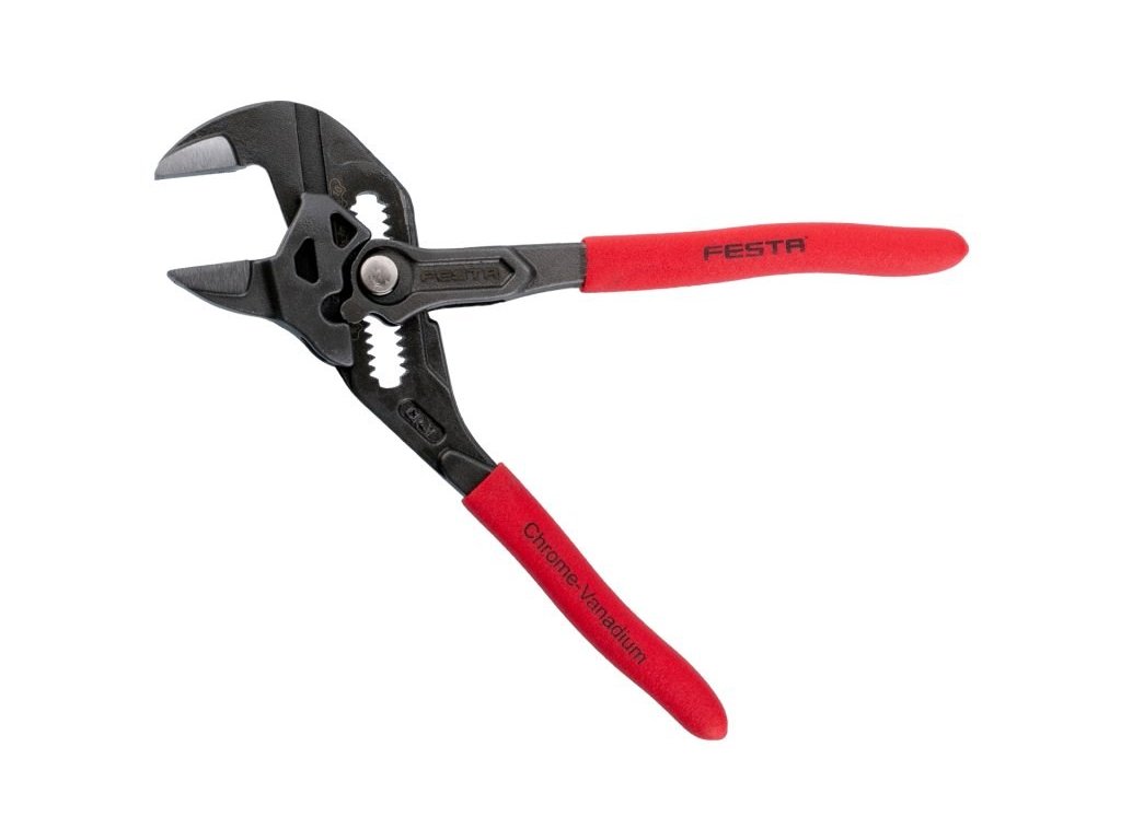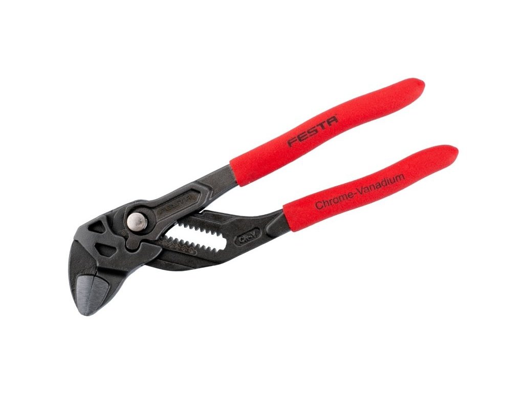 • nastavitelné SIKO kleště s rovnými(plochými) čelistmi, maximální rozteč 40 mm • kleště dokáží nahradit sadu klíčů v daném rozmezí - jak metrické, tak i palcové • rychlé nastavení požadovaného rozměru pomocí tlačítka - přesné nastavení bez nežádoucího samovolného přeskočení na jiný rozměr • paralelní ploché čelisti s pákovým převodem - umožňují silné a přesné sevření bez vůle • pákový převod až 10 násobně zvyší sílu ruky - vhodné také na uchopování, držení, ohýbaní nebo stlačování • materiál kleští - chromvanadiová ocel, kovaná, kalená v oleji • pogumované rukojeti pro pevný a neklouzavý úchopDoplňkové parametry