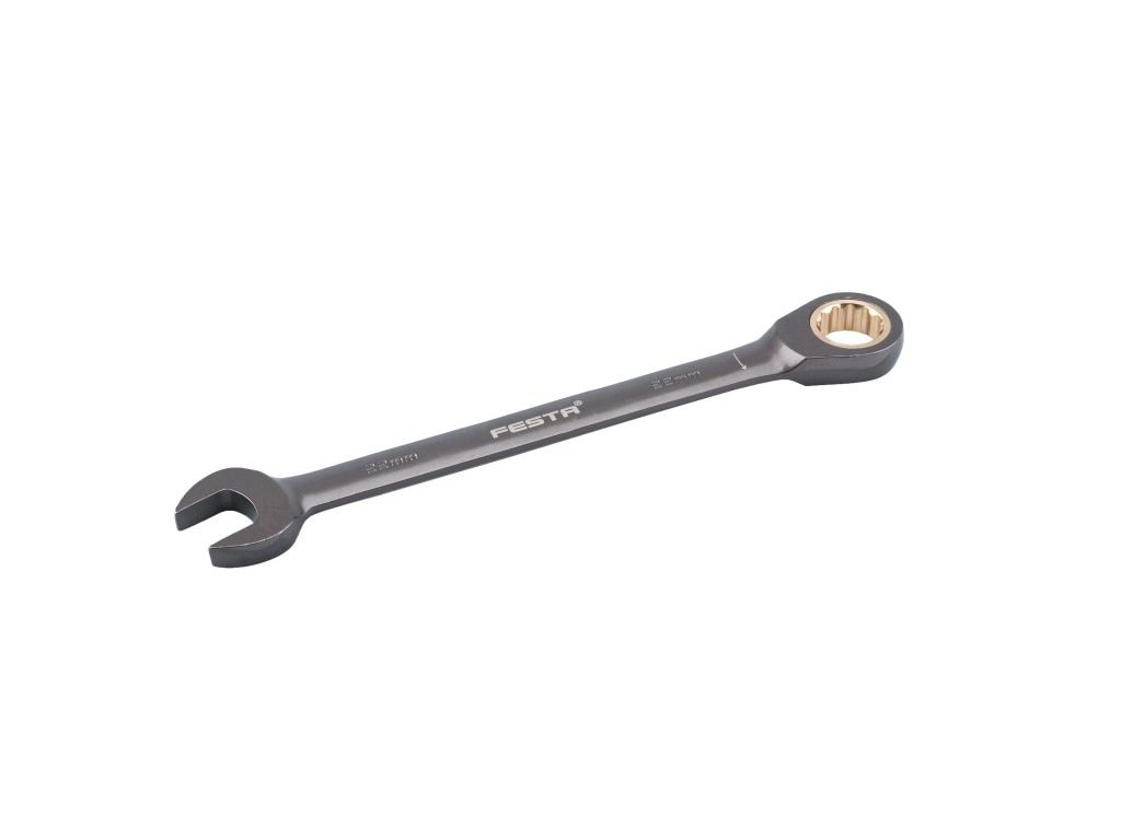 Ráčnové klíče FESTA jsou vyrobeny kováním z kvalitní chromvanadiové oceli. Tato ocel povrchově upravená matným tvrdochromem pro dosažení optimální povrchové tvrdosti a odolnosti vůči korozivním vlivům. Rohatku ráčny klíče tvoří 72 kalených zubů, záběr po 5-ti obloukových stupních. Kvalitou, tvrdostí a přesností přesně odpovídají normě DIN/ISO.