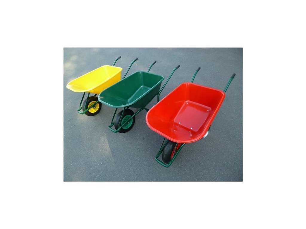 Zahradní kolečko má nosnost 100 kg a objem 100 l.