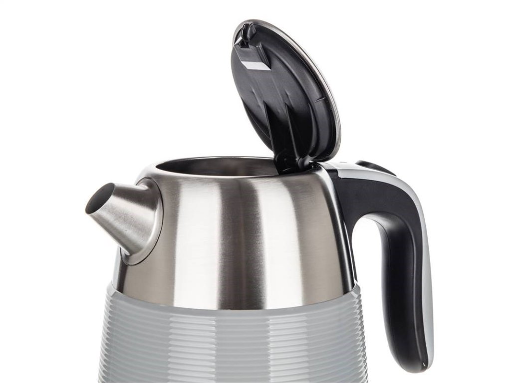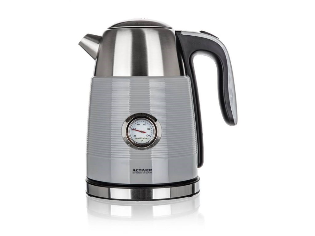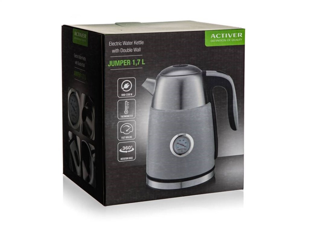 Moderní dvoustěnná varná konvice JUMPER s plochým dnem a nerezovým tělem o objemu 1,7 l je designovým doplňkem každé kuchyně. Pomocí analogového teploměru můžete sledovat teplotu vody. Konvice je vybavena ochranou proti přehřátí, má základnu sestředovým konektorem - volně otočný o 360 stupňů, vestavěný filtr proti hrubým nečistotám a automatické / manuální vypnutí. Jedinečná - dvoustěnná konstrukce zamezuje popálení při náhodném dotyku, udržuje uvařenou vodu déle teplou pro postupnéodlévání. Zároveň v sobě kombinuje výhody vnitřní nerezové vrstvy a vnější plastové. PARAMETRY Barva Šedá Délka kabelu (m) 0,75 Kontrolka provozu Ano Materiál Nerez / plast Objem (l) 1,7 Příkon (W) 1850 - 2200 Provozní napětí (V/Hz) 220 - 240 / 50 - 60 Hmotnost brutto (kg) 0,010 Hmotnost netto (kg) 0,010 Bezpečnostní pojistka Ano Filtr Ano Skrytá spirála Ano Středový konektor Ano Záruka 24 měsícůDoplňkové parametry