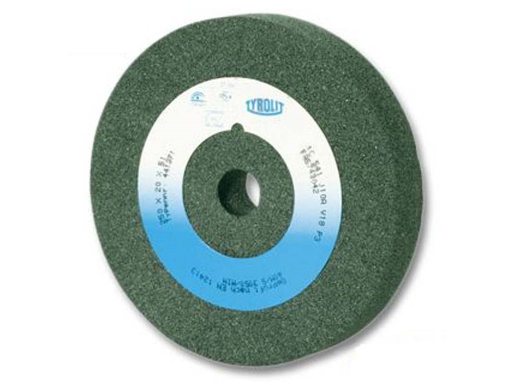 Výrobce: TYROLIT. Specifikace: 49C40L8V40. Tvar T1. Složení: zelený karbid křemíku s pojivem keramickým. Použití: tvrdokov, litina (ocel do 67HRC, nerez, kámen, barevné kovy). Barva: zelená. Zrnitost: 40 Tvrdost: L. Do stolních a stojanových brusek Keramicky pojené kotouče jsou charakteristické svojí dlouhou životností.Doplňkové parametry