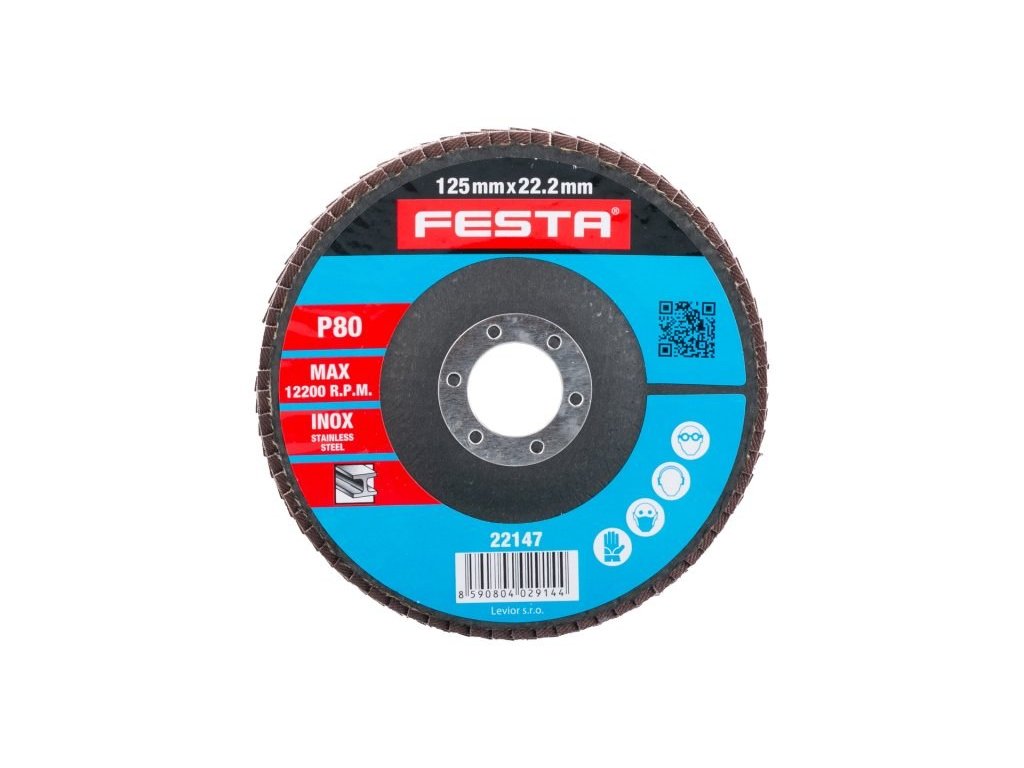 Zrnitost: 80; Druh Zrna: oxid zirkoničitý; Pojivo: umělá pryskyřice; Podkladový materiál: pružná tkanina-100% bavlna (240-260g/m2); Provedení: vyhnutý; vnitřní průměr: 22,2mm; Max. Pracovní rychlost: 80m/s; Max. přípustné otáčky: 12200 1/min.