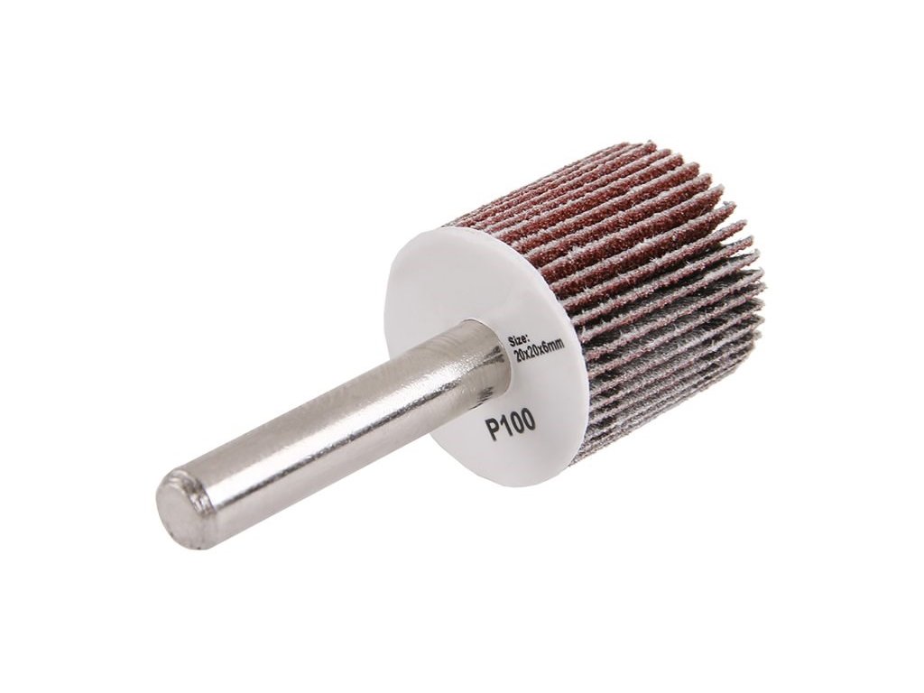 Brusný lamelový kotouč na stopce, zrnitost: 100 druh zrna: oxid hlinitý pojivo: umělá pryskyřice podkladový materiál: pružná tkanina - 100% bavlna (240-260g/m2) použití : broušení, obrušování, odrezování, odstraňování nátěrů.Doplňkové parametry
