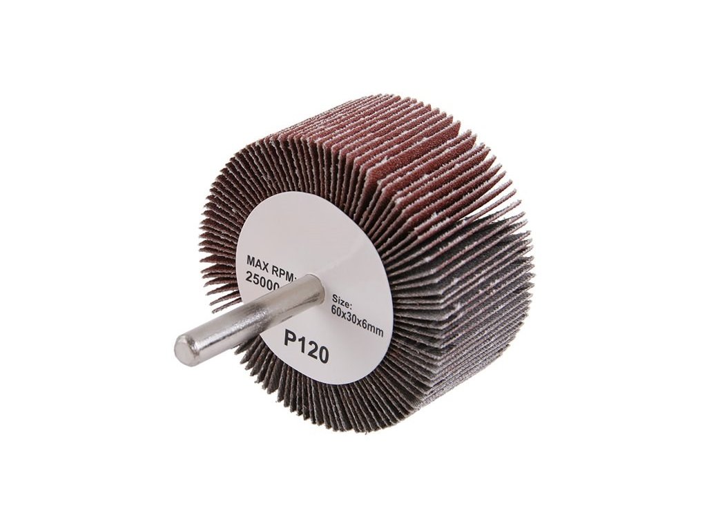 Brusný lamelový kotouč na stopce, zrnitost: 120 druh zrna: oxid hlinitý pojivo: umělá pryskyřice podkladový materiál: pružná tkanina - 100% bavlna (240-260g/m2) použití : broušení, obrušování, odrezování, odstraňování nátěrů.Doplňkové parametry