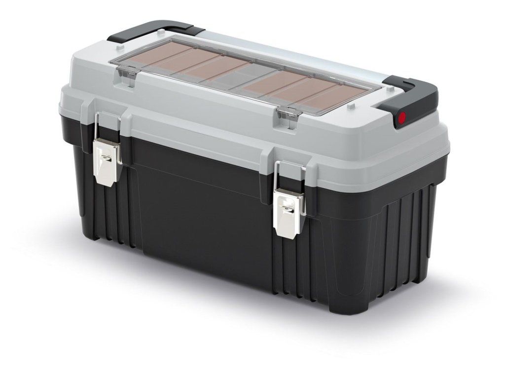 Kufr na nářadí s kov. držadlem a zámky OPTIMA šedý 470x256x238 (krabičky)