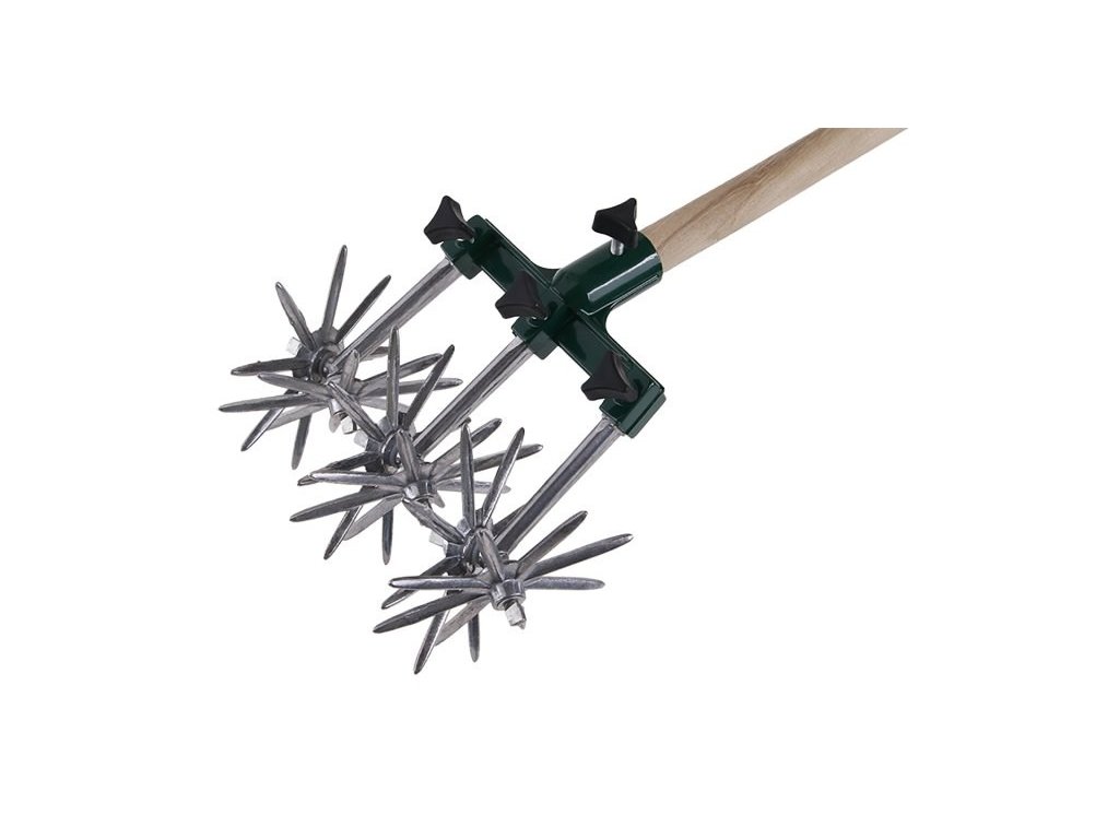 Kultivátor, úprava pro použití - ruční nebo na násadu, použití : pro zvlášť jemné drcení půdy speciálně tvarovanými nastavitelnými hvězdicovými kolečky.