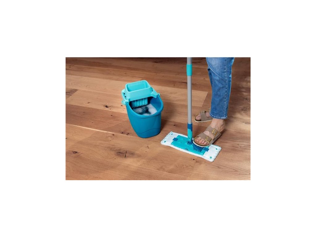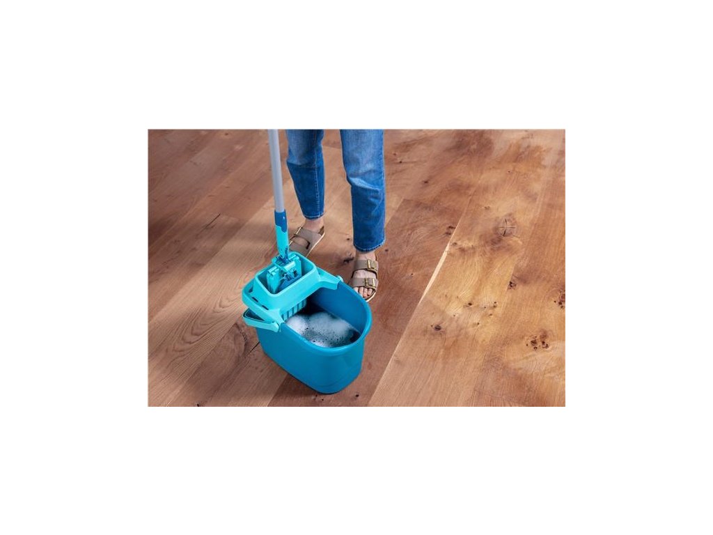 Úklidový set **Leifheit PowerClean M** představuje špičkový systém pro mokré vytírání podlah, který kombinuje robustnost profesionálního nářadí s komfortem pro domácí použití. Sada se skládá z **podlahového mopu PowerClean**, teleskopické tyče a **univerzálního vědra o objemu 10 litrů se ždímacím nástavcem**. Hlavní předností tohoto systému je unikátní nášlapné odjišťování hlavice mopu. Stačí nohou stisknout tlačítko, hlavice se uvolní do svislé polohy a následně ji vložíte do ždímacího síta. Silným stlačením tyče směrem dolů mop vyždímáte do požadované suchosti, aniž byste se museli ohýbat nebo se rukama dotýkat špinavé vody.