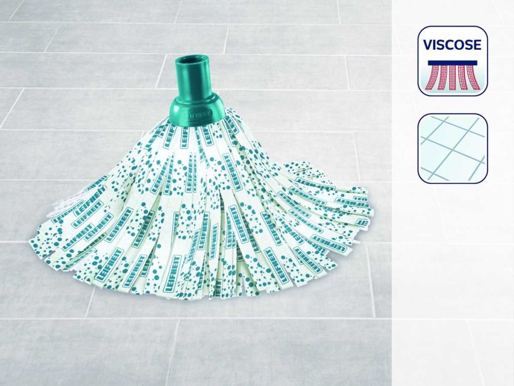 Leifheit náhradní hlavice na mop Classic je ideálním doplňkem pro váš podlahový mop Leifheit Classic, který zaručuje vždy dokonale čisté podlahy s minimální námahou. Tato vysoce kvalitní hlavice je vyrobena z **extrémně savých viskózových vláken**. Viskóza je materiál známý svou vynikající absorpční schopností, která spolehlivě pohlcuje velké množství vody a zároveň efektivně odstraňuje špínu, prach a jemné nečistoty z jakéhokoli typu podlahy. Díky své struktuře zanechává podlahy **zářivě čisté a beze šmouh**. Je obzvláště vhodná pro úklid dlažby a kamenných podlah, ale dobře poslouží i na jiných odolných površích. Hlavice se snadno připevní k mopu a lze ji prát v pračce na 60 °C, což zaručuje hygienickou čistotu a dlouhou životnost. S touto náhradní hlavicí bude vaše podlaha zářit bez zbytečných starostí a s důvěrou v kvalitní úklidové řešení.