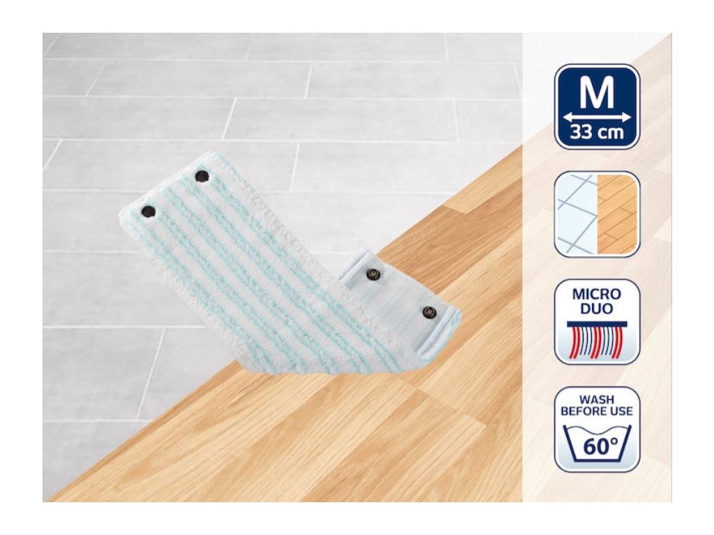 Leifheit náhradní návlek TWIST Micro Duo M je klíčovým doplňkem pro váš úklidový systém Leifheit Clean Twist M, který vám zaručí vždy dokonale čisté podlahy. Tento návlek je navržen pro efektivní úklid všech typů podlah, od dlažby a vinylu až po laminát a dřevo. Je vyroben z inovativních vláken Micro Duo, což je unikátní kombinace mikrovláken a speciálních štětin. Tato dvojitá struktura zajišťuje mimořádně účinné odstranění i odolných nečistot, mastnoty a prachu. Šířka návleku (33 cm) je ideální pro běžné místnosti a umožňuje rychlý a důkladný úklid. Návlek je snadno pratelný v pračce na 60 °C, což zaručuje hygienickou čistotu a dlouhou životnost. S tímto návlekem bude vaše podlaha zářit bez šmouh a zbytečných starostí.