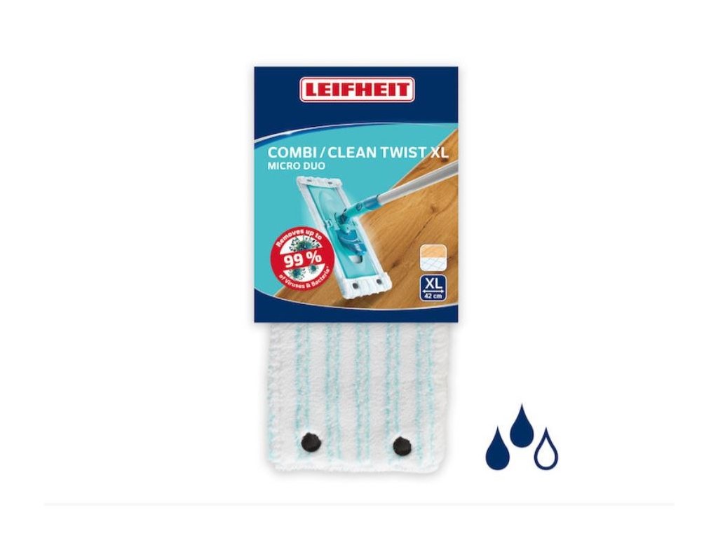 - Snadná výměna: Jednoduché připevnění a sejmutí z mopu Leifheit Clean Twist Mop XL.