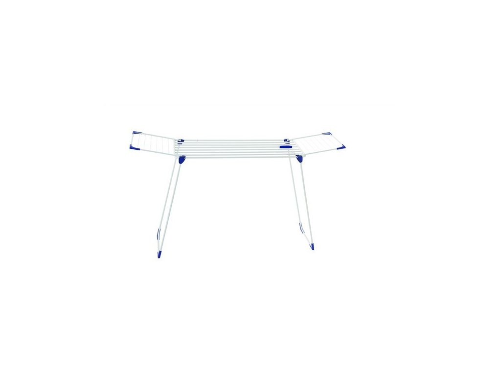 Výjimečným prvkem jsou **extra silné sušicí tyče** v centrální části. Tyto tyče jsou navrženy tak, aby zabraňovaly vzniku nehezkých otlaků na prádle, které u běžných tenkých drátů často vyžadují následné žehlení. Boční křídla dosahují ve své nejvyšší poloze výšky **110 cm**, což je ideální pro sušení dlouhých kusů oděvů, jako jsou kalhoty, šaty nebo osušky, aniž by se dotýkaly podlahy. Celý sušák je vyroben z kvalitních materiálů s antikorozní úpravou, což umožňuje jeho bezpečné použití v interiéru i na balkoně či zahradě. Navzdory své kapacitě je sušák po složení velmi plochý a snadno jej uskladníte za skříň nebo pod postel.