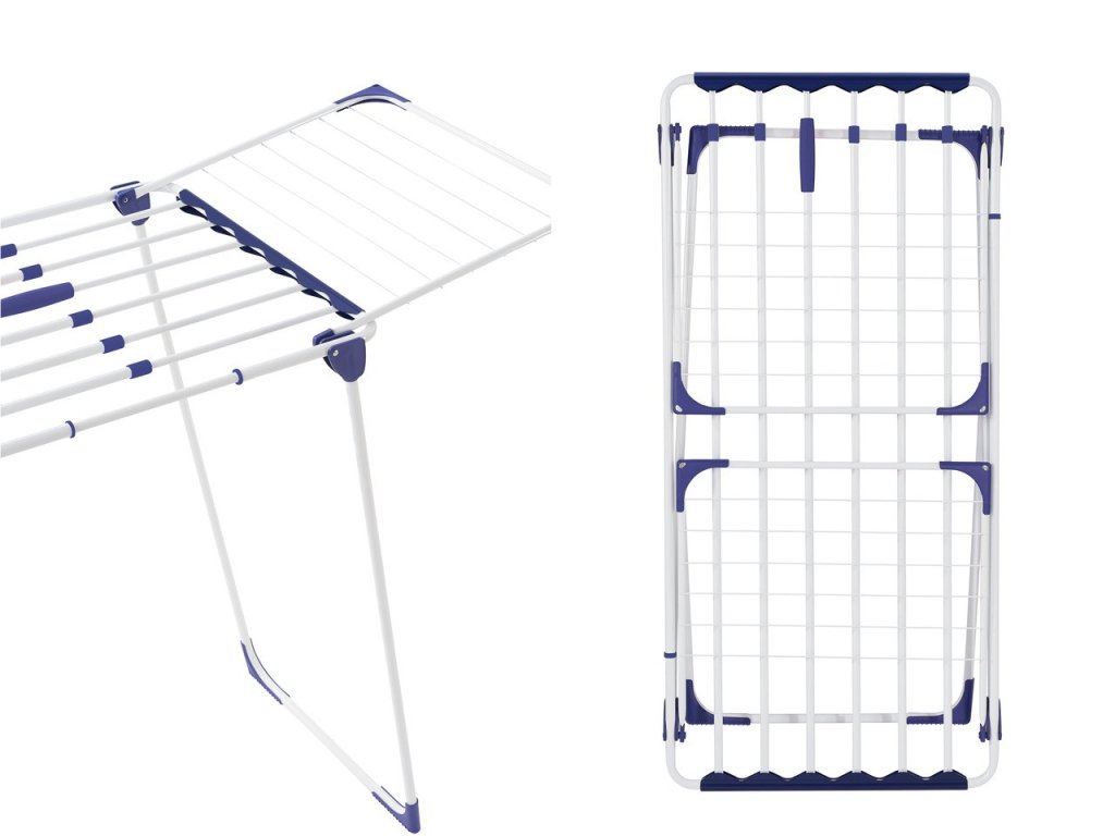 - Vysoké bočnice: Výklopná křídla jsou dostatečně vysoko pro sušení dlouhého prádla bez kontaktu se zemí.