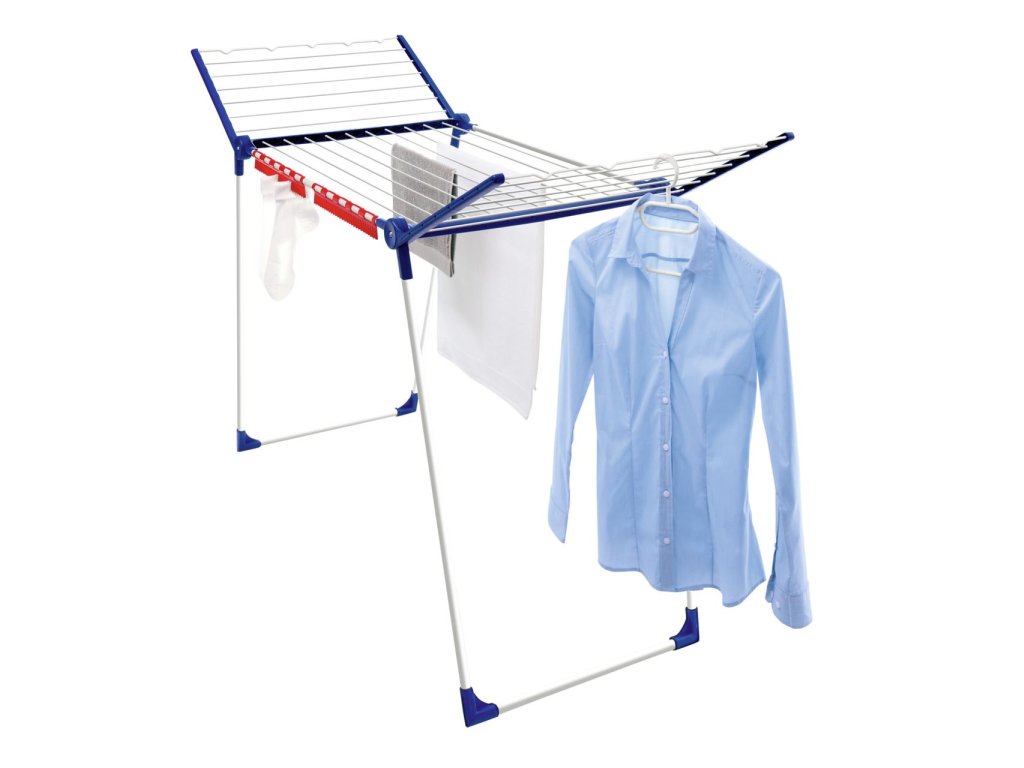 - Vhodný pro dlouhé prádlo: Vysoká boční křídla (cca 105 cm) umožňují sušení dlouhých kusů prádla bez dotyku země.