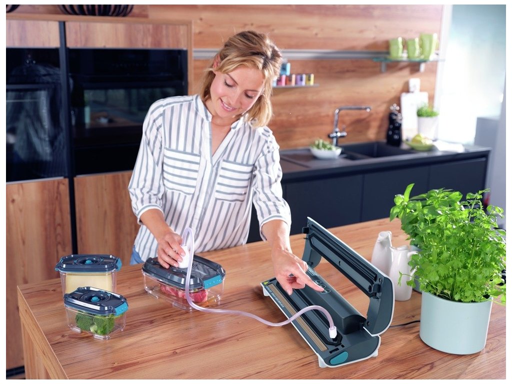 Nenechte se připravit o čerstvé potraviny a ušetřete značné množství peněz! S Leifheit vakuovačkou Vacu Power 100 získáte spolehlivého pomocníka, který vám pomůže uchovat potraviny déle čerstvé, omezit plýtvání a efektivněji plánovat vaše nákupy. Pořiďte si ji ještě dnes a objevte nový standard v uchovávání potravin ve vaší domácnosti!