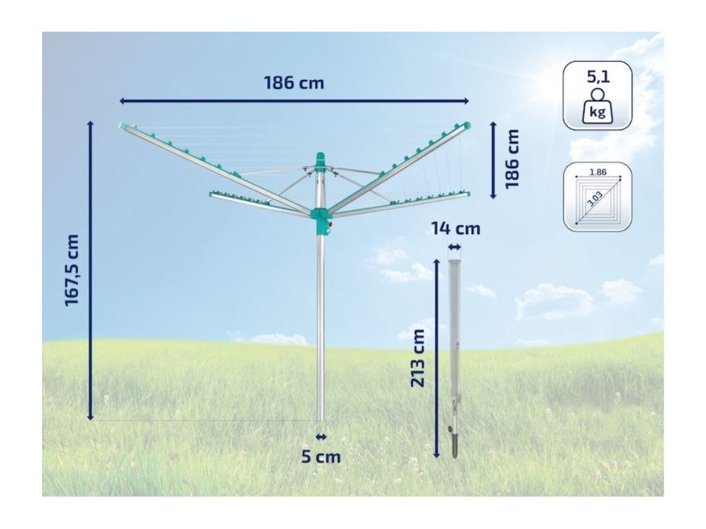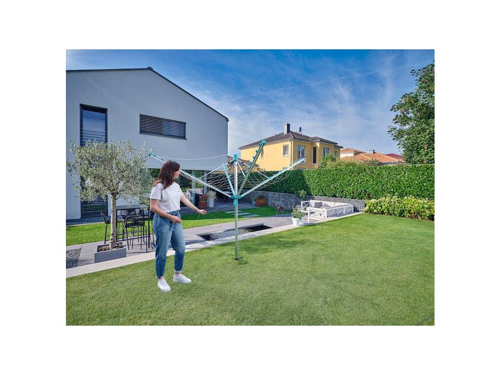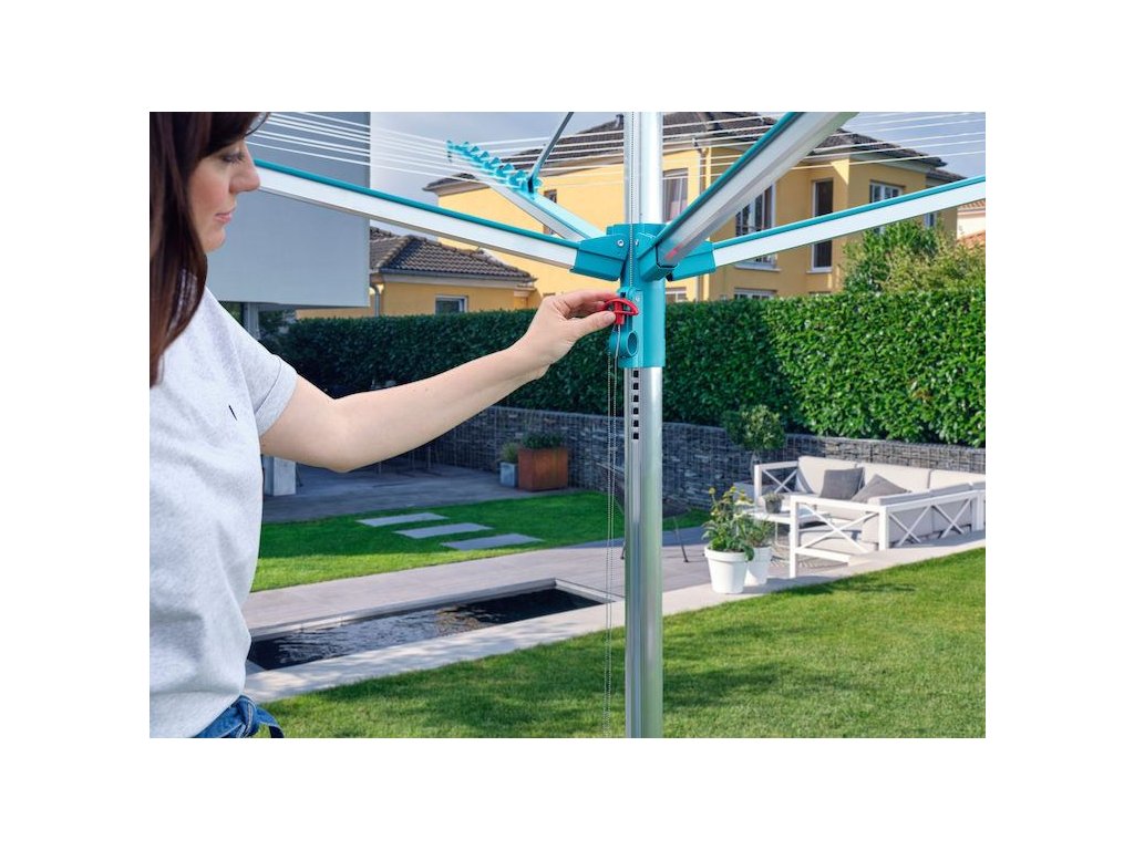 - Automatické zatahování šňůr: Inovativní systém Linomatic® zajistí, že se šňůry při složení sušáku automaticky zatáhnou do jeho ramen. Tím zůstanou vždy čisté a připravené k použití.