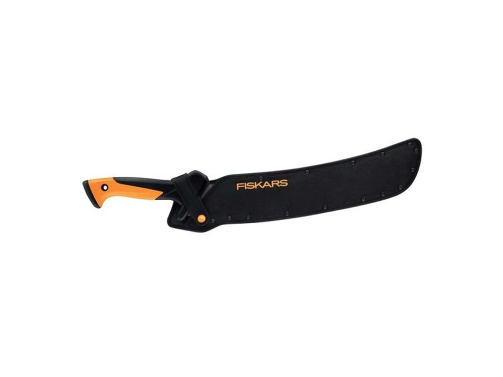 Fiskars Mačeta Solid™ Mačeta Solid je navržena pro rychlé a účinné odstraňování vegetace na velkých plochách, ať již se jedná o křoviny či silné větve. Bude vám výborným pomocníkem při údržbě zahrady nebo čištění lesa, ať již se rozhodnete pro čištění velkých ploch křoví, řezání silných větví, prořezávání vzrostlých palem či jiné práce. Držení jednou rukou ponechává druhou ruku volnou ke shrnutí a uchopení vegetace. Rukojeť však nabízí dostatek prostoru také pro držení obouruč, což je skvělé pro větší sílu a kontrolu sekání. Zakřivený profil 38 cm dlouhé čepele zabraňuje jejímu zasekávání v hustém porostu. Čepel z kalené oceli zůstává dlouho ostrá, díky nerezavějící povrchové úpravě s nízkým třením perfektně proniká tvrdými materiály a nelepí se na ní odsekané zbytky rostlin. Ergomnomicky tvarovaná rukojeť s texturovaným povrchem SoftGrip™ se přizpůsobí přirozenému tvaru vaší ruky, což zabraňuje tvorbě puchýřů. Výztuže rukojeti umožňují pevný úchop i při vyvinutí maximální síly. Rozšířený tvar rukojeti vám umožní přiblížit ruku blíže k čepeli pro lepší kontrolu při přesných řezech, chránič prstů zvyšuje bezpečnost při práci s mačetou. Mačeta Fiskars Solid disponuje ochranným nylonovým pouzdrem pro bezpečné přenášení i uskladnění. Výhody mačety Fiskars Solid: větší rozměry = vyšší účinnost sekání práce jednou rukou / možnost použití obou rukou pro vyvinutí větší síly čepel z kalené oceli je dlouho ostrá ergonomická rukojeť s povrchem SoftGrip™ přizpůsobujícím se přirozenému tvaru ruky ochrana prstů pro bezpečnost během používání ochranné pouzdro Parametry mačety Fiskars Solid: materiál čepele: kalená ocel materiál rukojeti: plast (povrch SoftGrip™) hmotnost: 0,89 kg rozměry výrobku: 61,7 x 9,5 x 2,8 cm rozměry balení: 70 x 18,8 x 4,5 cmDoplňkové parametry