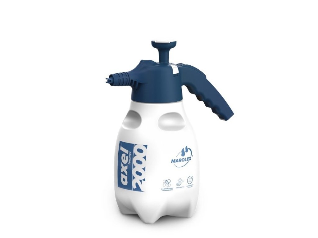 Marolex pěnový postřikovač AXEL 2000 je ruční tlakový pěnovač s obsahem 2000 ml. Je navržen tak, aby s jeho pomocí šlo vytvořit hustou pěnu i z obyčejného saponátu. Toho je docíleno speciální konstrukcí trysky. Pěnu lze použít k mytí aut, keramických obkladů a dalších povrchů. Díky pěně, která na rozdíl od klasického postřiku z povrchu tak rychle nesteče, je možné ji nastříkat například i na svislé plochy.