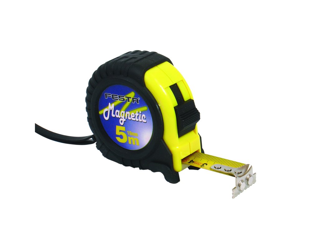 Kvalitní svinovací metr, kalená páska, dobře čitelná stupnice, EEC certifikát - metr vhodný ke kalibraci, pouzdro metru vyrobeno z ABS plastu s gumovou ochranou - vyšší odolnost proti poškození při nárazech a lepší stabilita při manipulaci s měřidlem, doraz pásky z měkčené gumy, magnetická koncovka pásky volně uložená pro měření vnějších i vnitřních rozměrů, poutko, klip na opasek.