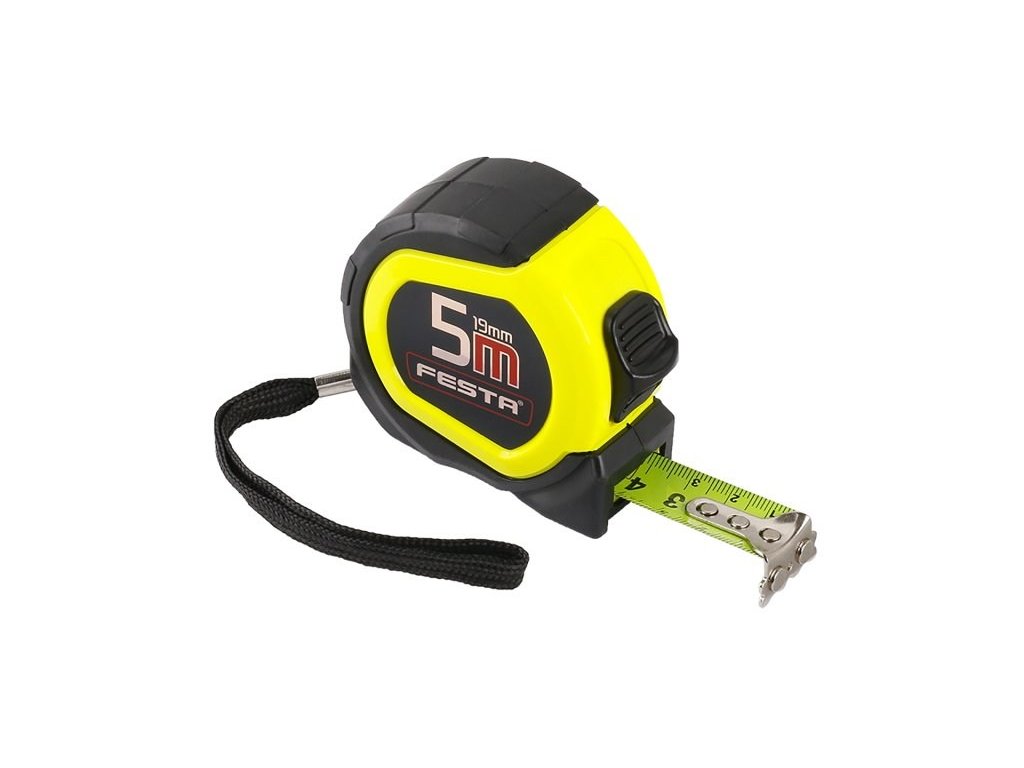 Kvalitní svinovací metr, kalená páska, dobře čitelná stupnice, EEC certifikát - metr vhodný ke kalibraci, pouzdro metru vyrobeno z ABS plastu s gumovou ochranou - vyšší odolnost proti poškození při nárazech a lepší stabilita při manipulaci s měřidlem, doraz pásky z měkčené gumy, magnetická koncovka pásky volně uložená pro měření vnějších i vnitřních rozměrů, poutko, klip na opasek.