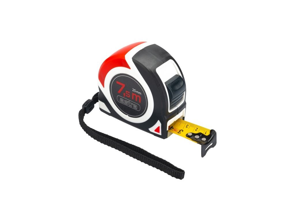 Svinovací metr, kalená páska, dobře čitelná stupnice, dvě brzdy, poutko, klip na opasek, prodejní box.