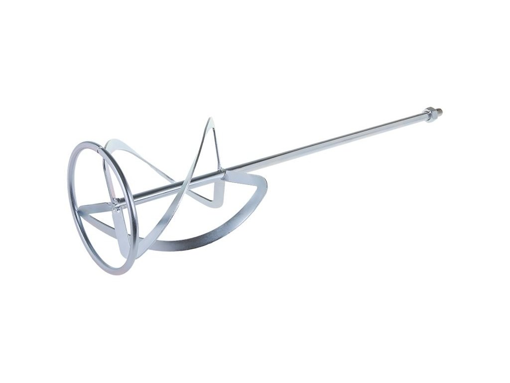 Míchadlo - levotočivé (míchací účinek shora tlačí směs dolů) - metla, pozinkované, rozměr : O 160 x 600 mm - M14, použití : pro těžké materiály s vysokou viskozitou. Malty, betony, cementové a vápenné omítky, spojovací hmoty, mazaniny, epoxidové pryskyřice, živičné vrstvy.