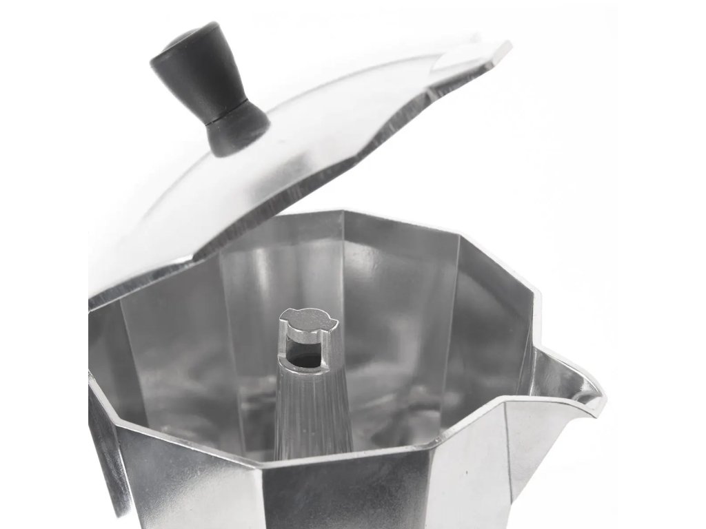 Tato krásná moka konvice nabízí alternativní způsob přípravy kávy, především lahodného espressa. Konvičku můžete použít na elektrických, sklokeramických, plynových sporácích a díky desce dna z nerezové oceli 430 s/s i na indukci. Tipy a triky: Do spodní části nádoby, která má objem 440 ml, nalijete předehřátou vodu. Nádobu plňte pod pojistný ventil. Vložíte zásobník naplněný mletou kávou bez upěchování, našroubujete vrchní část kávovaru a můžete začít vařit. Tlakem vznikajícím při varu se espresso dostane do horní nádobky a vy můžete nalévat. Nádobu doporučujeme po odebrání ze sporáku zchladit ve studené vodě. Moka konvice je vyrobená ze zdravotně nezávadného hlináku s povrchovou úpravou, držadlo ze žárvzdorného plastu ABS usnadní manipulaci. Navíc je opatřena bezpečnostním ventilem. Součástí balení je i jedno náhradní silikonové těsnění. To lze dokoupit i samostatně. Návod je součástí balení. Orion tip: Moka konvičku je lepší plnit horkou nebo teplou vodou, abyste ji předehřáli, a vyhnuli se tak silnému zahřívání celé konvičky na sporáku, což může mít vliv na výslednou chuť kávy. Vlastnosti produktu Materiál: hliníková slitina Uzávěr/víko: ano Materiál víka/uzávěru: hliníková slitina, plast Indukce: ano Výška (cm): 20 Průměr (cm): 12,5 Objem (l): 0,45 Hmotnost (g): 597 Ucho: ano Materiál ucha: plast ABS Použití: na kávu Vlastnosti: silikonové těsnění Vhodné do myčky: neDoplňkové parametry
