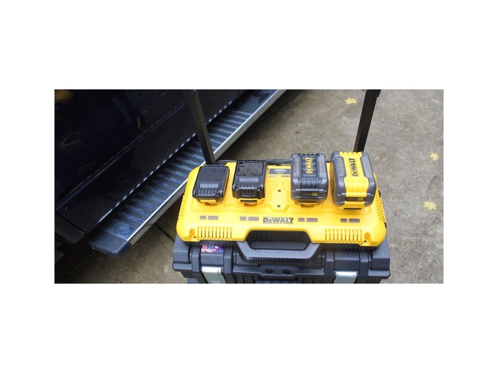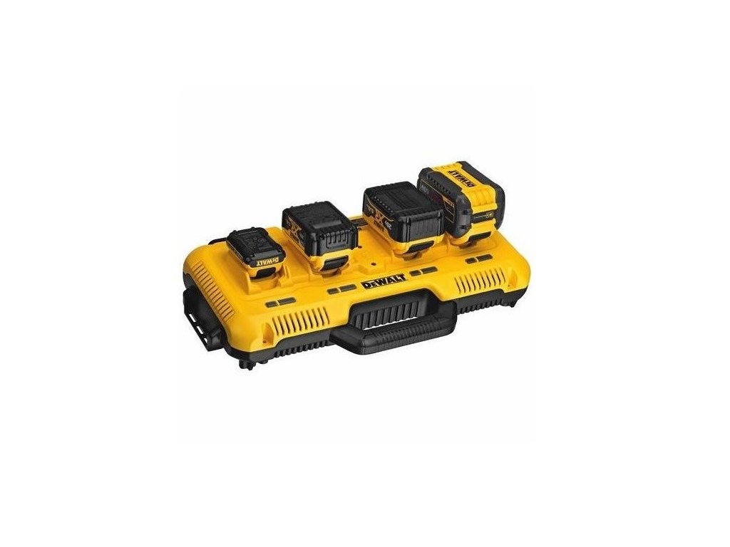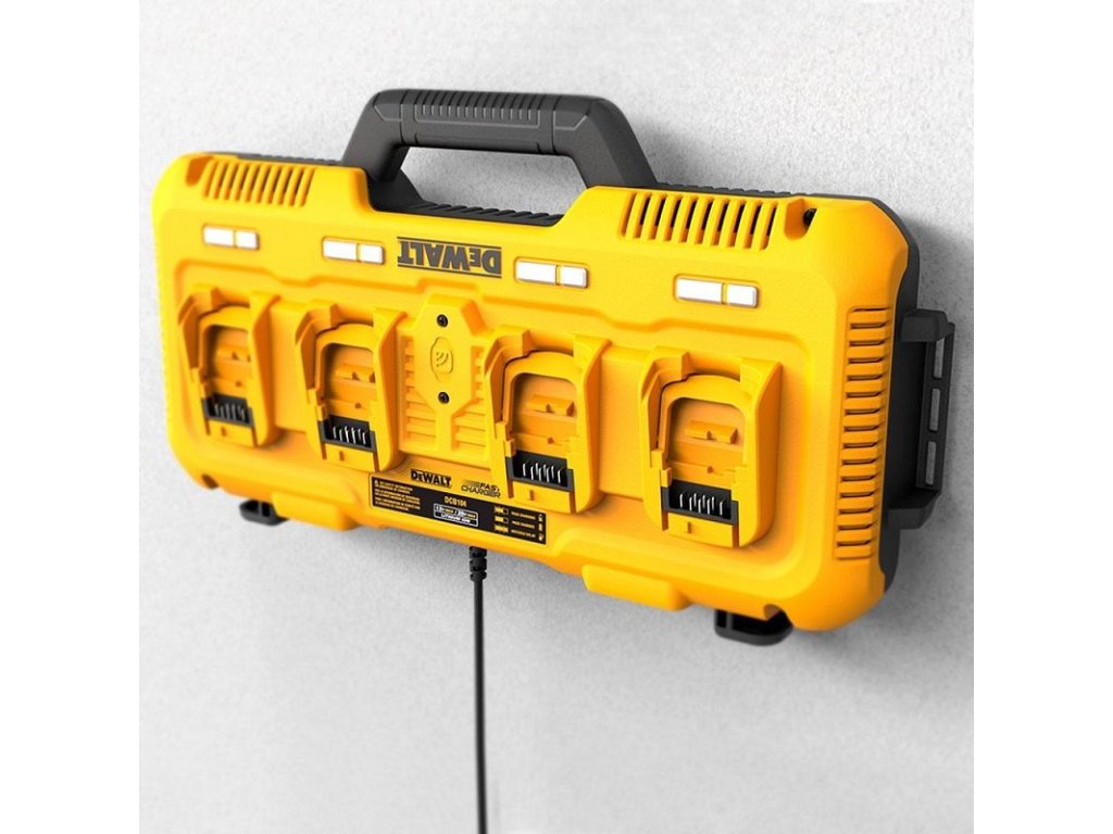 Nabíječka se čtyřmi porty 10,8V - 54V Dewalt DCB104 • Čtyři nabíjecí porty • Pro akumulátory Li-Ion 10,8 - 54V • Nabíjecí proud 8 Ah • Kompatibilní s kufry řady ToughsystemDoplňkové parametry