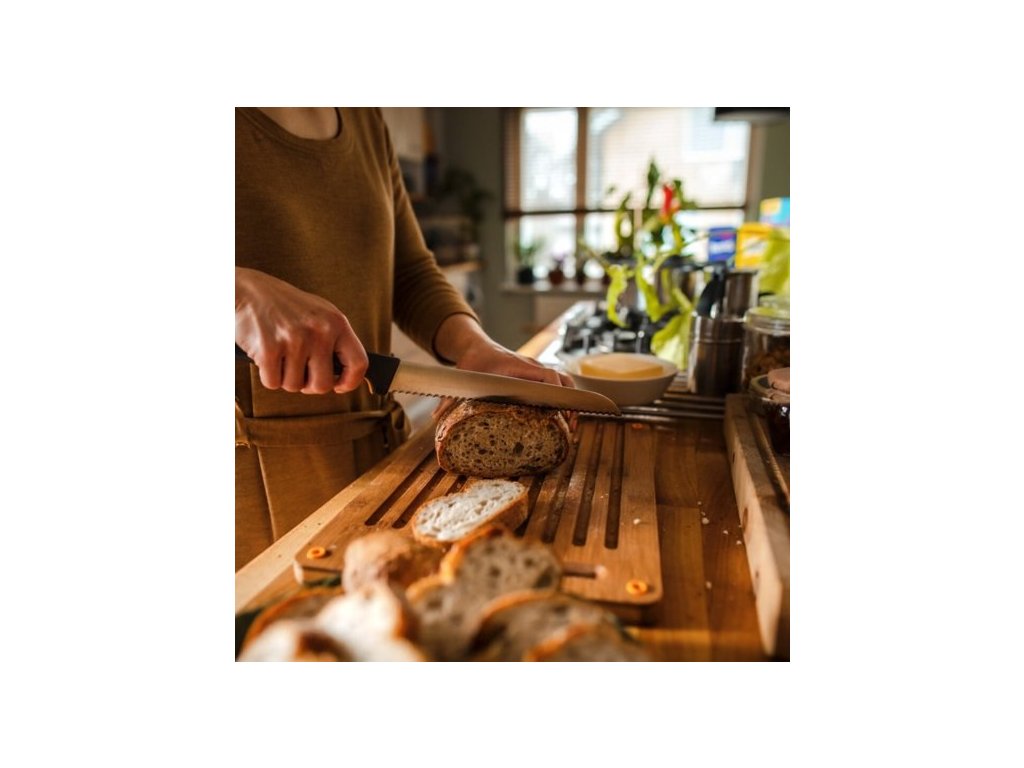 Nůž na pečivo Fiskars Functional Form ™ má dlouhou čepel se zoubky a je navržený pro pohodlné používání se snadnou údržbou Ideální pro krájení chleba a dalšího pečiva s tvrdou kůrkou Odolná čepel z japonské nerezové oceli Ergonomická rukojeť s povrchem SoftGrip ™ v místě uchopení Hluboký chránič prstů poskytuje pohodlné a bezpečné držení Lze mýt v myčce na nádobí Délka čepele 213 mm Tvrdost čepele HRC 52 Vysoký řezací výkon (testováno podle metodiky CATRA) Navrženo ve FinskuDoplňkové parametry