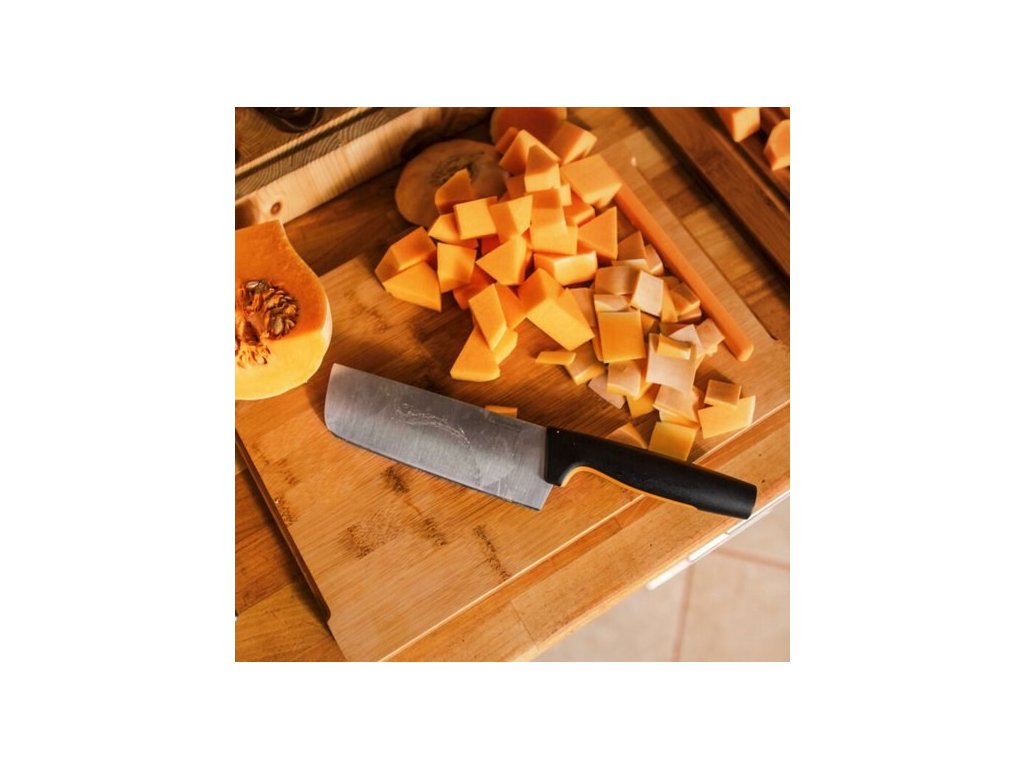 Nakiri nůž Fiskars Functional Form ™ je univerzální nůž asijského stylu se širokou čepelí navržený pro pohodlné používání a snadnou údržbu Ideální pro krájení velké zeleniny na drobno Odolná čepel z japonské nerezové oceli Ergonomická rukojeť s povrchem SoftGrip ™ v místě uchopení Hluboký chránič prstů poskytuje pohodlné a bezpečné držení Lze mýt v myčce na nádobí Délka čepele 158 mm Tvrdost čepele HRC 52 Vysoký řezací výkon (testováno podle metodiky CATRA) Navrženo ve FinskuDoplňkové parametry