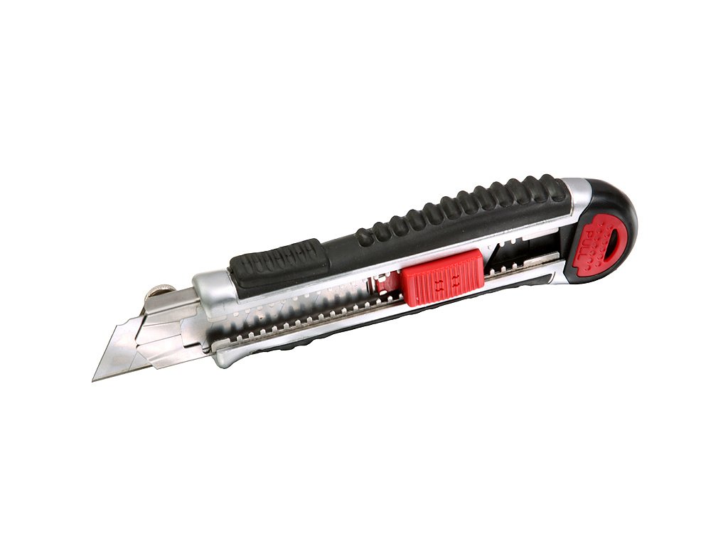 Profesionální odlamovací nůž FESTA 25mm, moderní a funkční design, bezpečnost a ergonimie, celokovové tělo s pogumovanou úchopovou částí, zásobník náhradních břitů, automatická výměna břitu (při naplněném zásobníku), automatická aretace s přítlačnou pojistkou břitu, baleno na blistru.