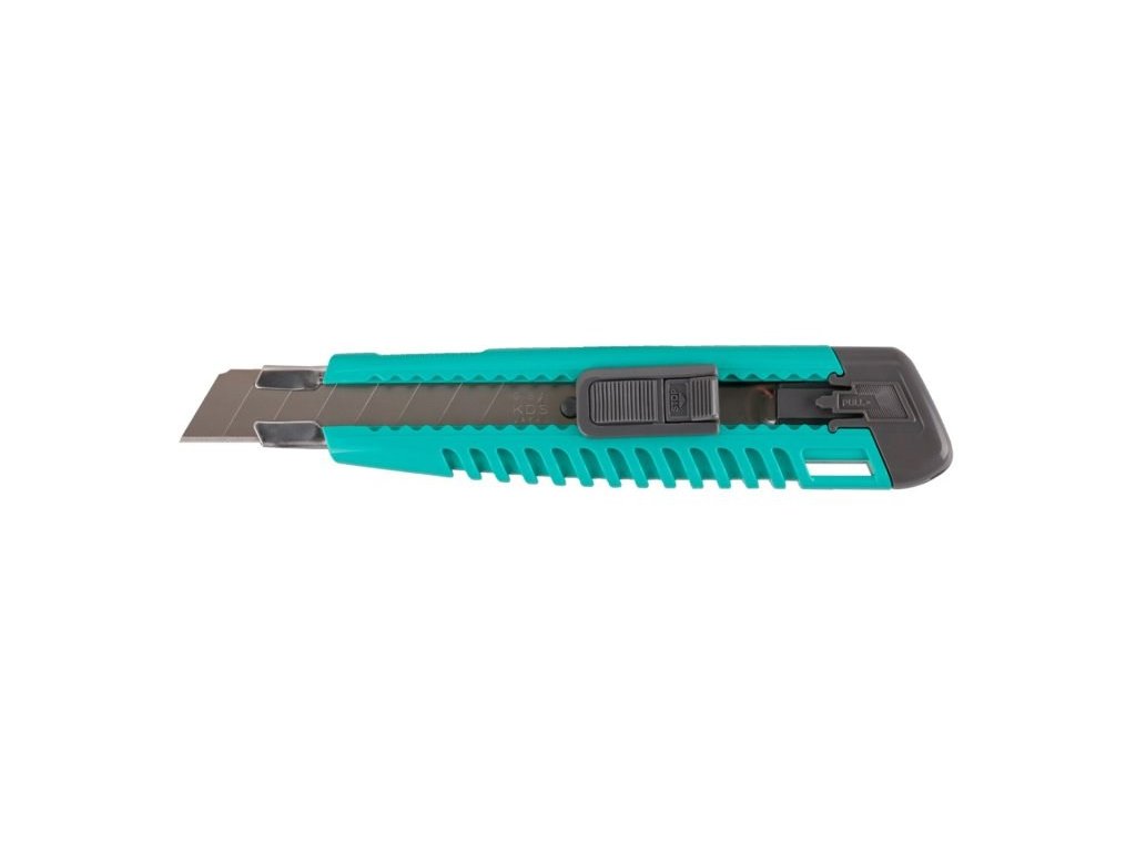 Profesionální odlamovací nůž od renomovaného japonského výrobce KDS, přesné zpracování a kvalitní materiály, odolný a přesný posuv s automatickou aretací, šířka čepele 18mm, baleno volně, včetně 2 náhradních čepelí, různobarevné provedení. Vhodné čepele LB 10 - 16011, GB 10 - 16012, LB 10 černé - 16016.